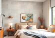 Matte black, handle-free cabinets stretch up to the ceiling, forming a dramatic and seamless wall of modern sophistication. A long, dark gray concrete island anchors the room, its cool surface reflecting the glow from a minimalist linear LED pendant. Two black swivel chairs with chrome bases invite conversation and relaxation. Light gray polished concrete floors bounce natural light throughout the space, enhancing the minimalist aesthetic. A stainless steel refrigerator integrates smoothly into the cabinetry, maintaining the clean lines. Large windows flood the kitchen with daylight, accentuating textures and sharp edges. This design proves that black kitchens can be both bold and serenely elegant.