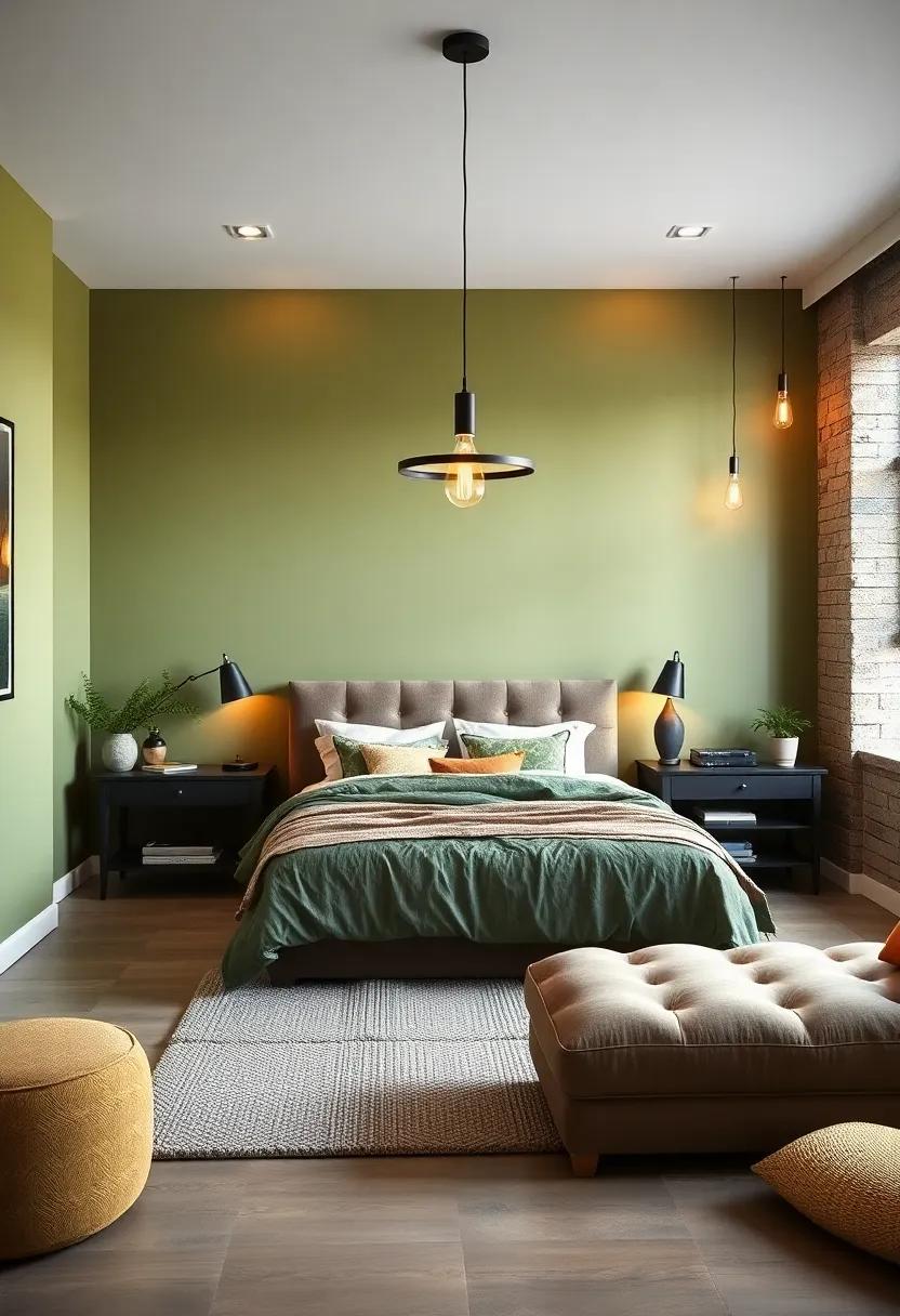 To elevate the olive green walls further, consider strategic lighting choices that accentuate the serene hue. Layered lighting options, such as pendant lights or floor lamps, can create warm, inviting spaces perfect for winding down or sparking imagination. Think about integrating: