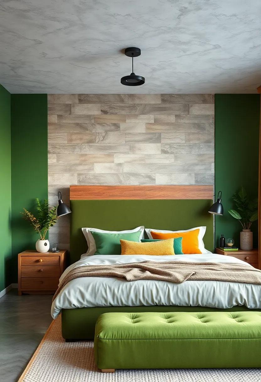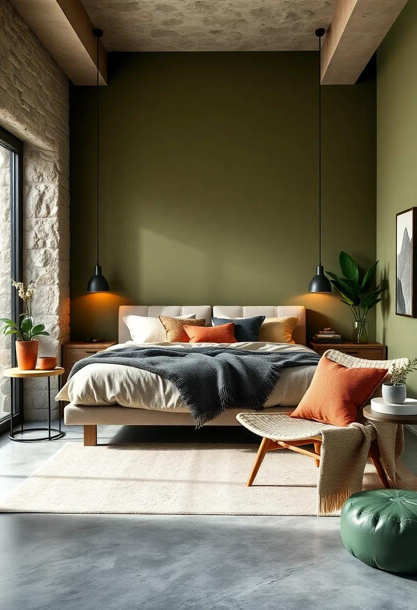 - Color Blocking: Create a striking headboard by implementing color blocks of olive green with contrasting shades.