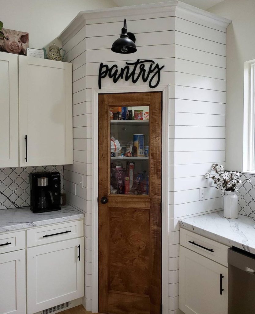 Farmhouse Pantry with Bold Door and Stylish Signage