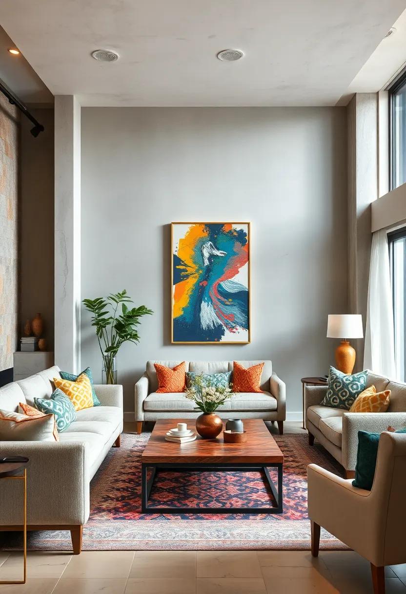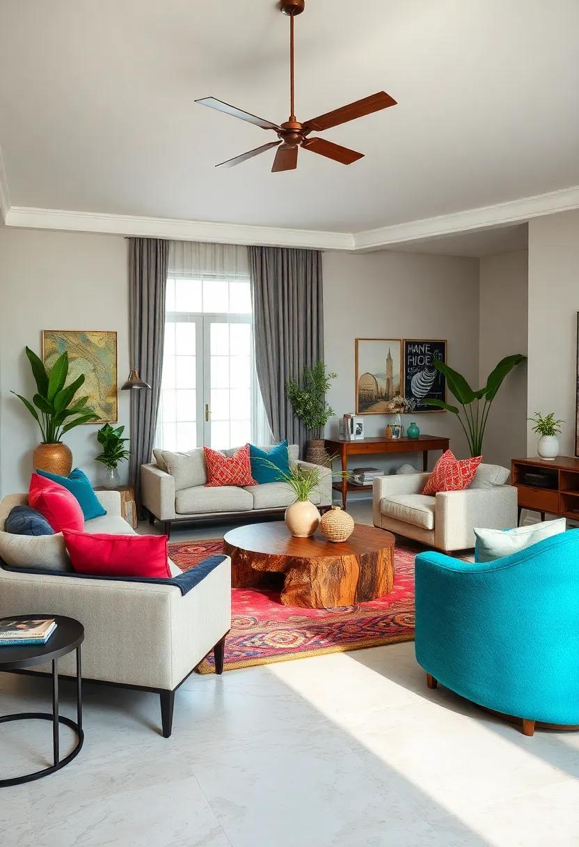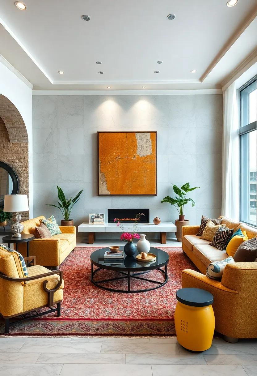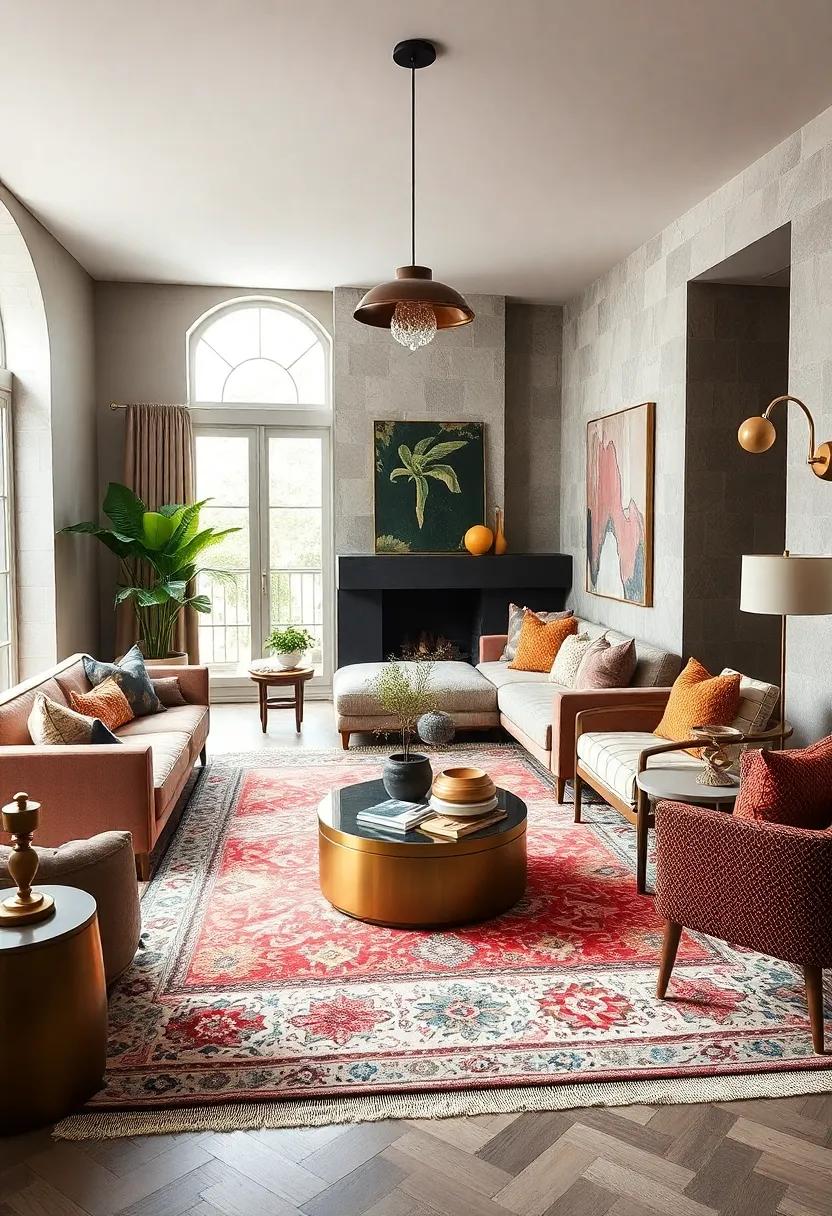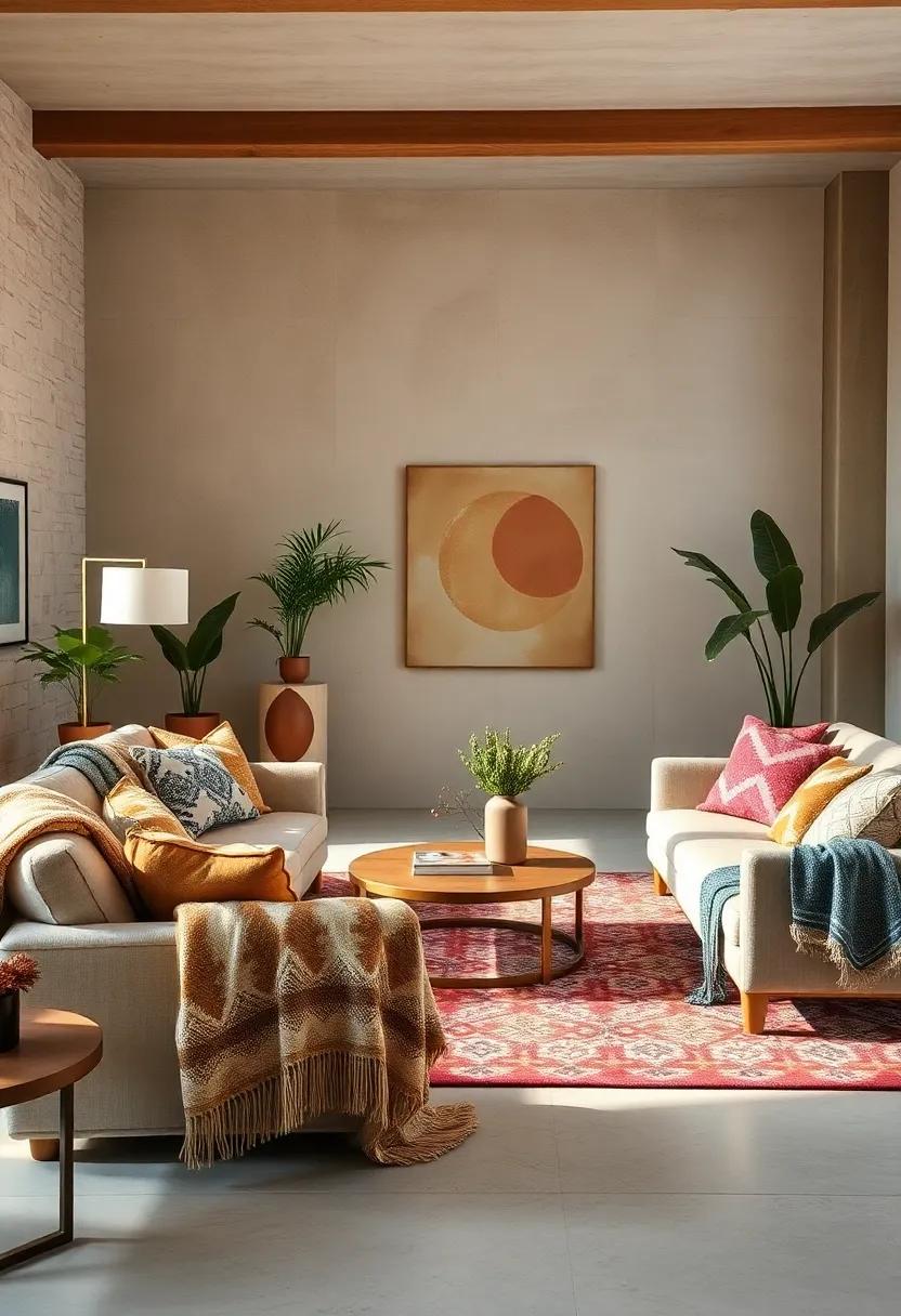 By thoughtfully mixing these colors, you can curate a cohesive look that feels both lively and harmonious. Don’t hesitate to experiment with layering various patterns, allowing the bold color blocks to act as a visual anchor against more intricate designs. The balance of simple and striking will not only enhance the eclectic feel of your living room but will also showcase your unique style as a design enthusiast.