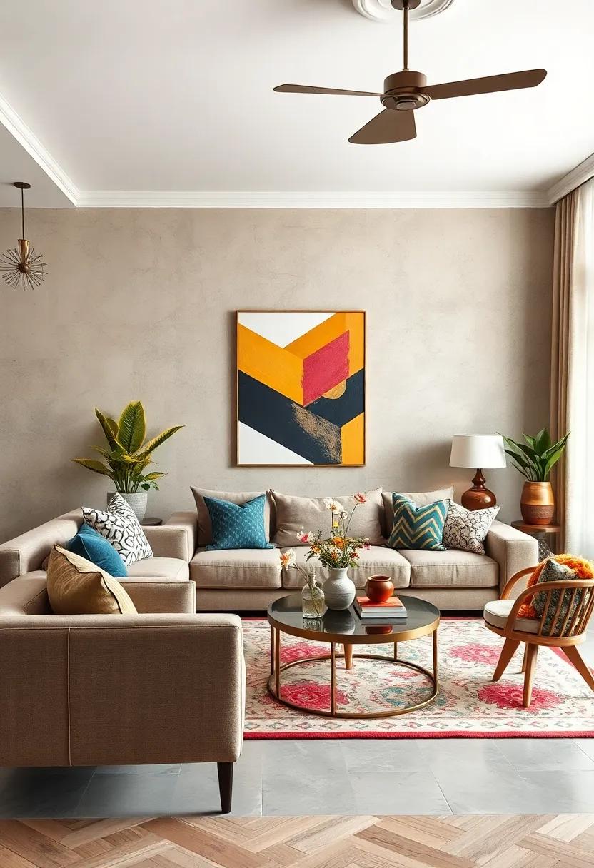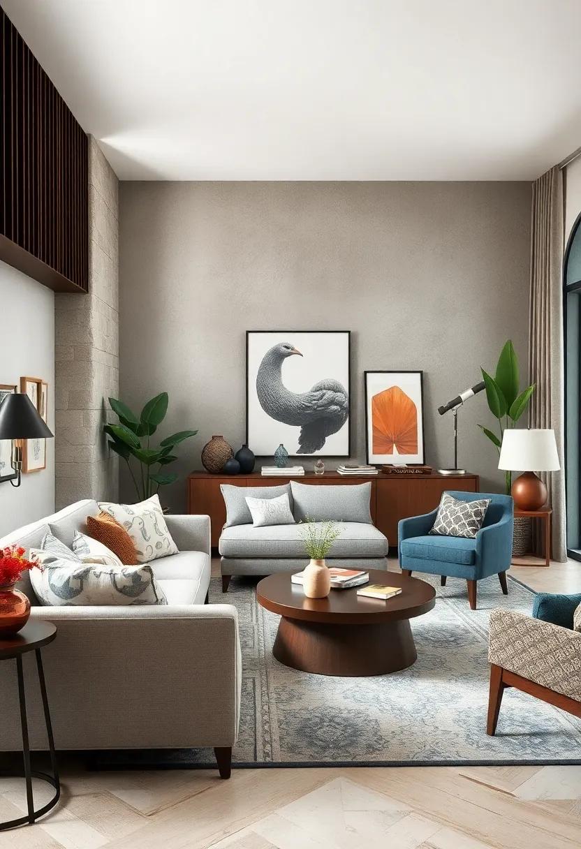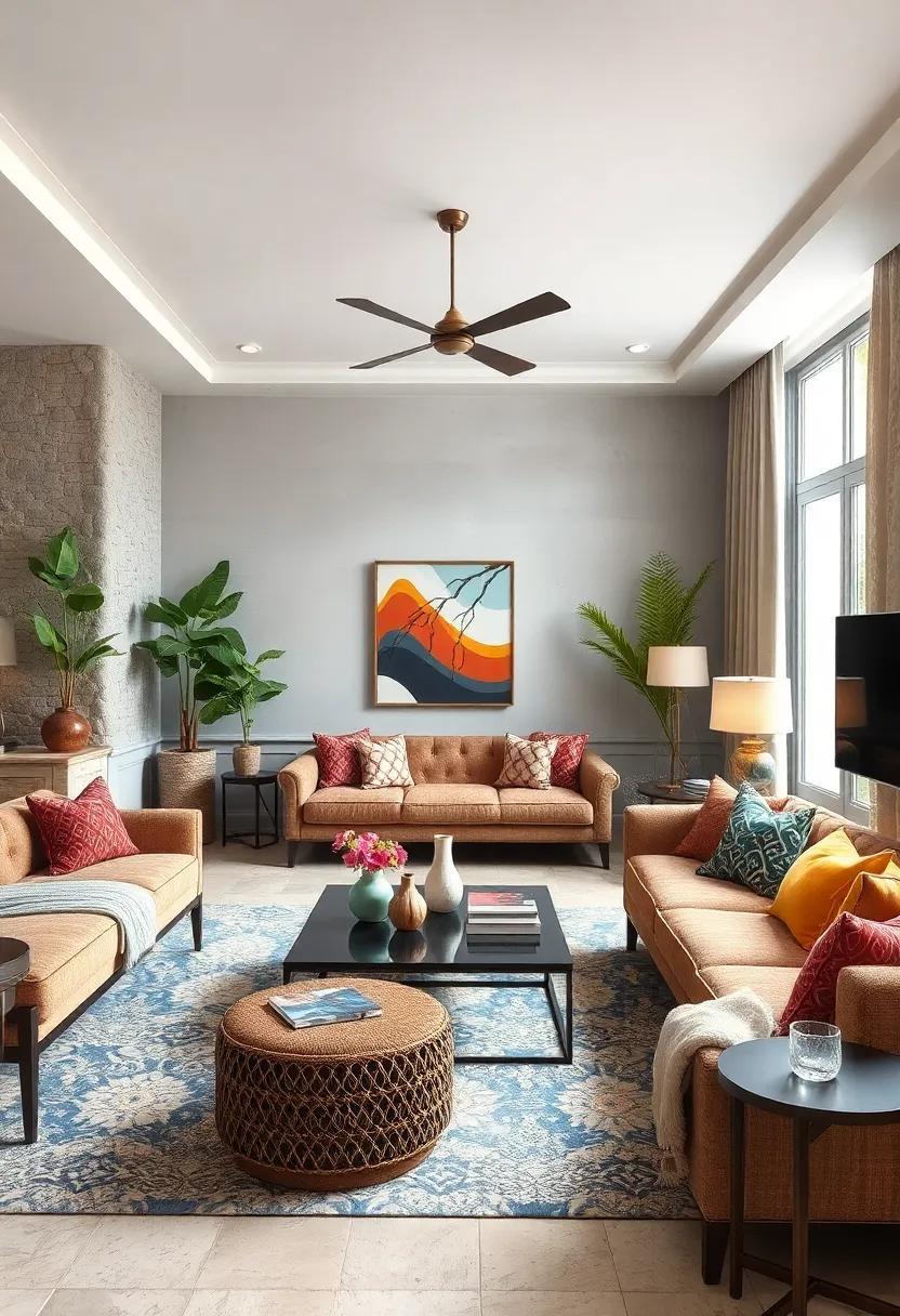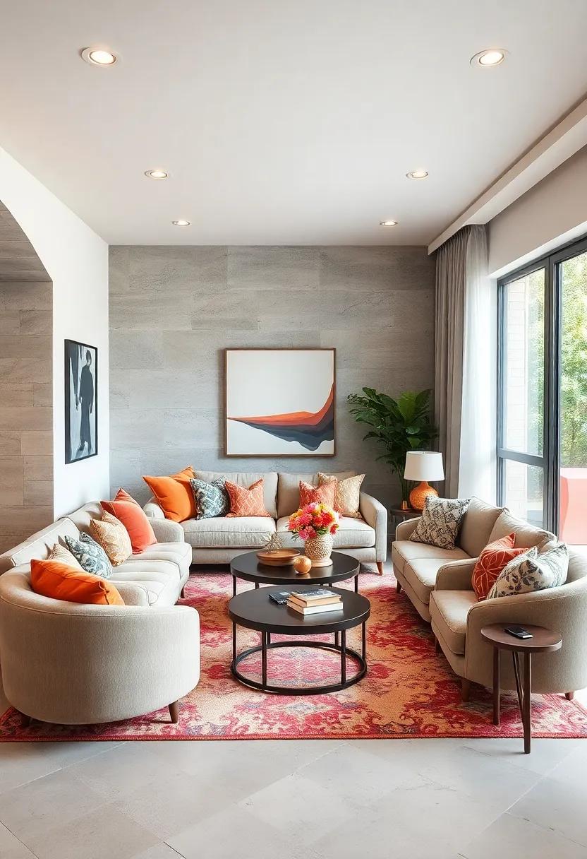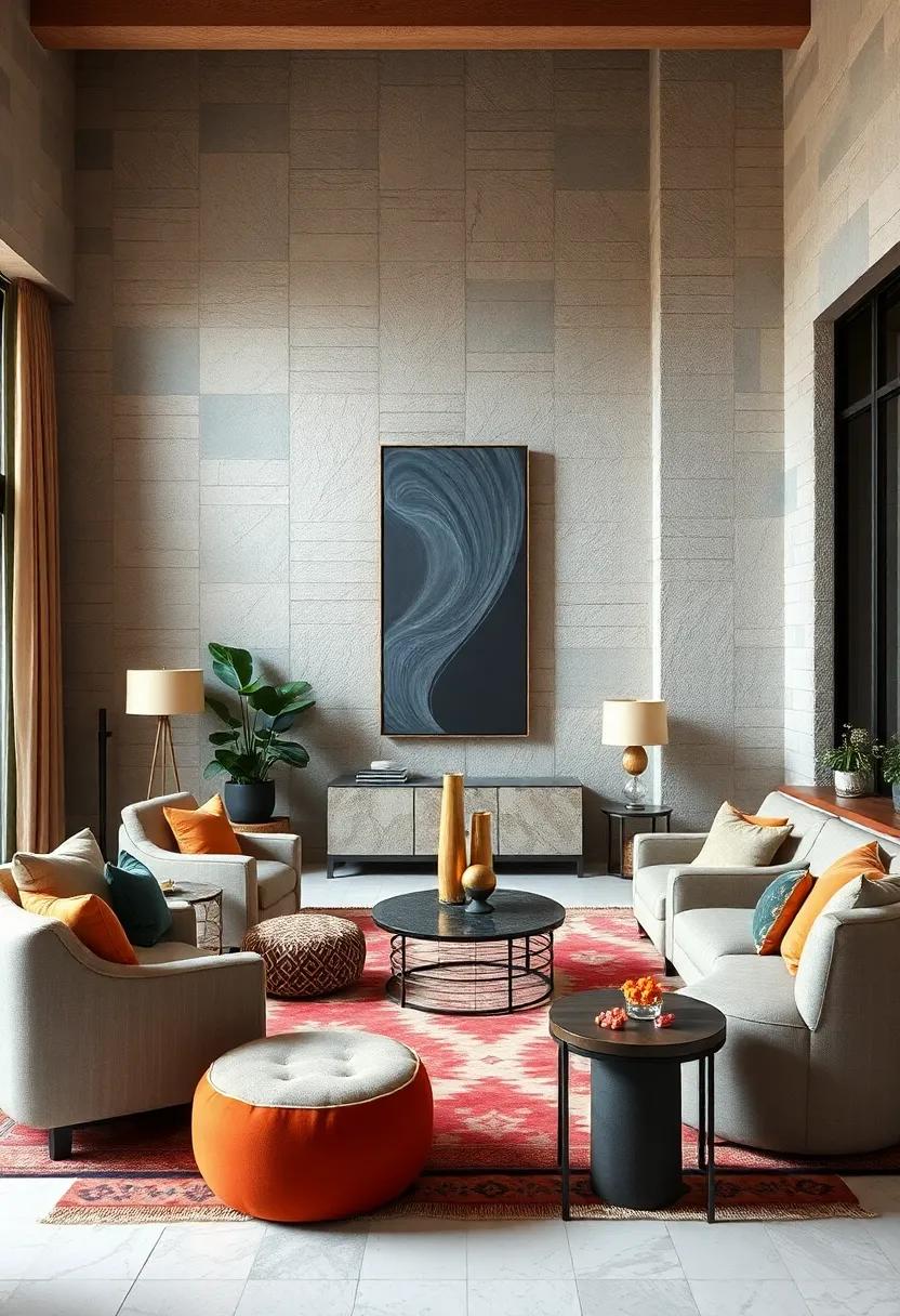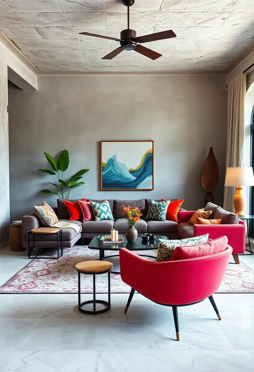 By thoughtfully mixing these colors, you can curate a cohesive look that feels both lively and harmonious. Don’t hesitate to experiment with layering various patterns, allowing the bold color blocks to act as a visual anchor against more intricate designs. The balance of simple and striking will not only enhance the eclectic feel of your living room but will also showcase your unique style as a design enthusiast.