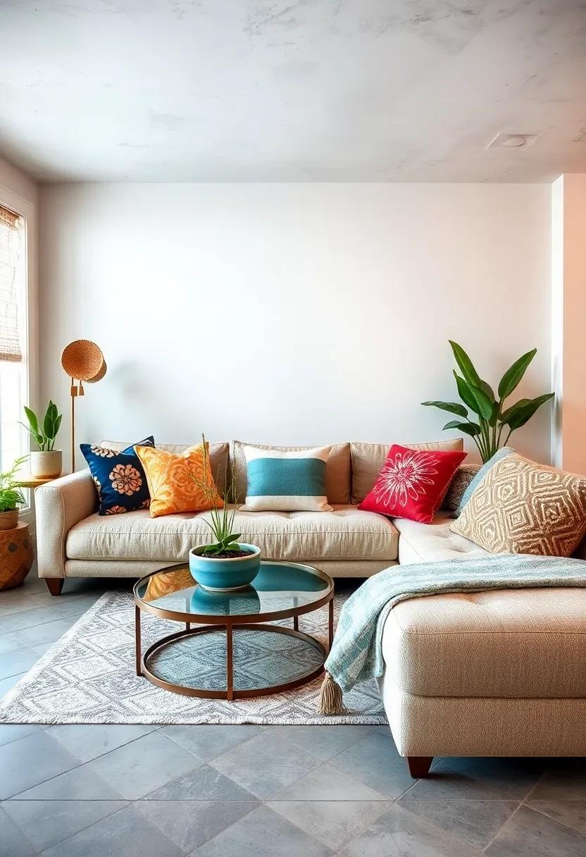Mix and Match Throw Pillows: Combine various textures and prints on your sofa to create a playful yet cohesive look
