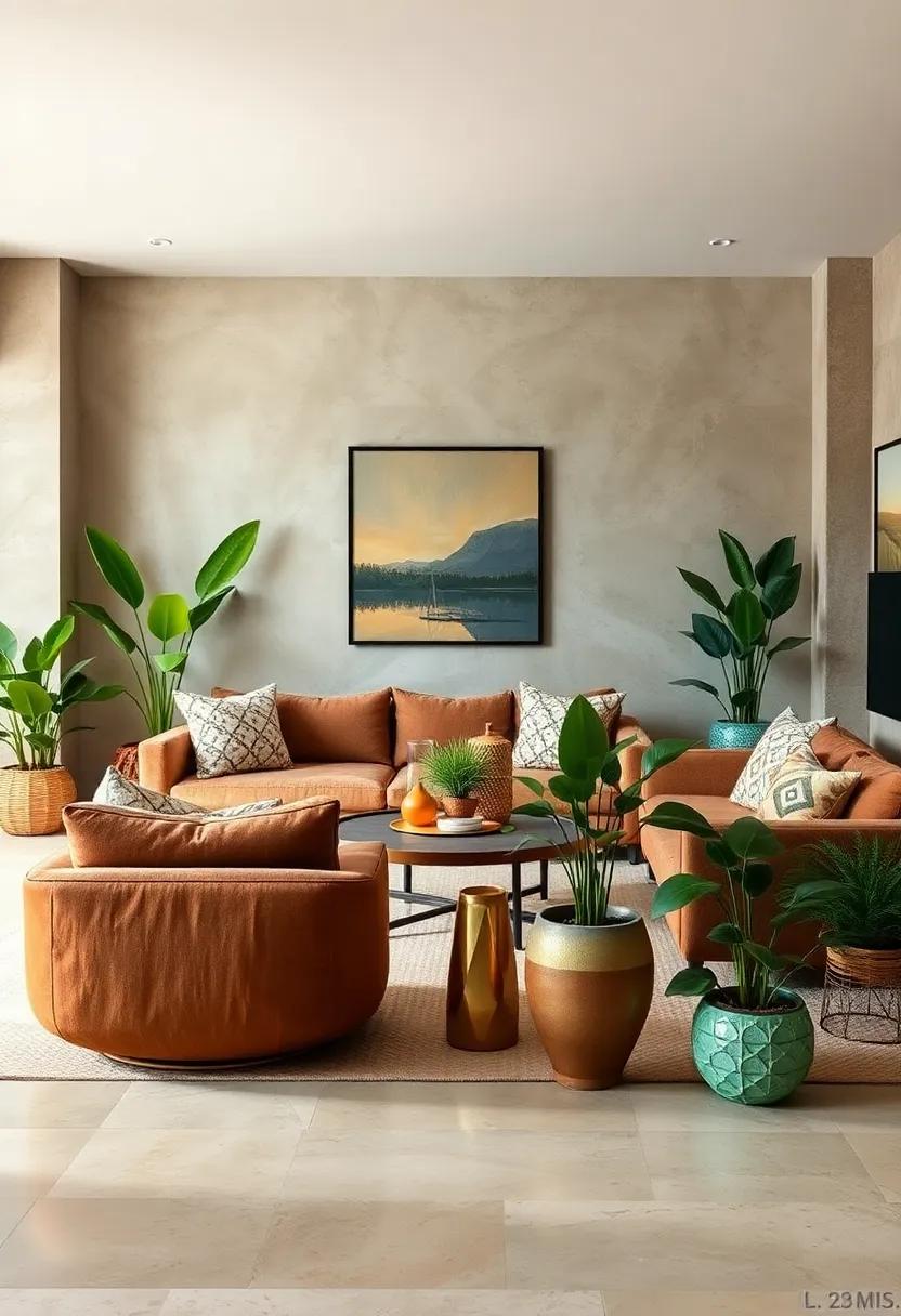 Natural Elements: Bring the outdoors in by incorporating plants with unique pots; consider varying heights and leaf patterns for impact