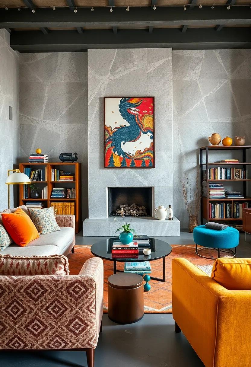 To create an eclectic living room that sparks joy and curiosity, consider incorporating art pieces that bring a sense of whimsy to the space. Unexpected styles like pop art, characterized by vibrant colors and playful imagery, can act as bold conversation starters. Imagine a striking canvas featuring oversized comic-style speech bubbles or a large portrait of a famous figure done in neon hues—these elements not only capture attention but also evoke smiles. Abstract pieces are equally enchanting, with their fluid shapes and bursts of colors inviting viewers to interpret their meanings, adding depth and intrigue to the array of patterns in your room.