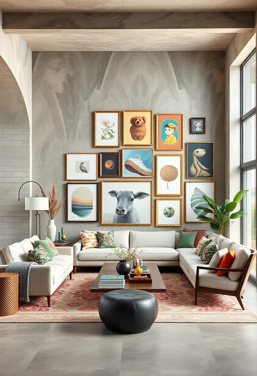 Artful Gallery Walls: Curate a collection of art pieces in varying styles and frames to create a dynamic visual impact