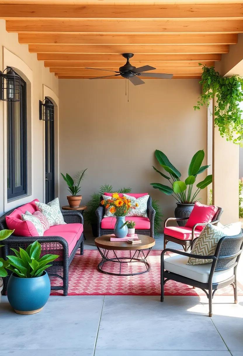 Color Pop Paradise: Incorporate bright, playful hues in your furniture and accessories to create an energizing outdoor space that cheers up any mood throughout the year
