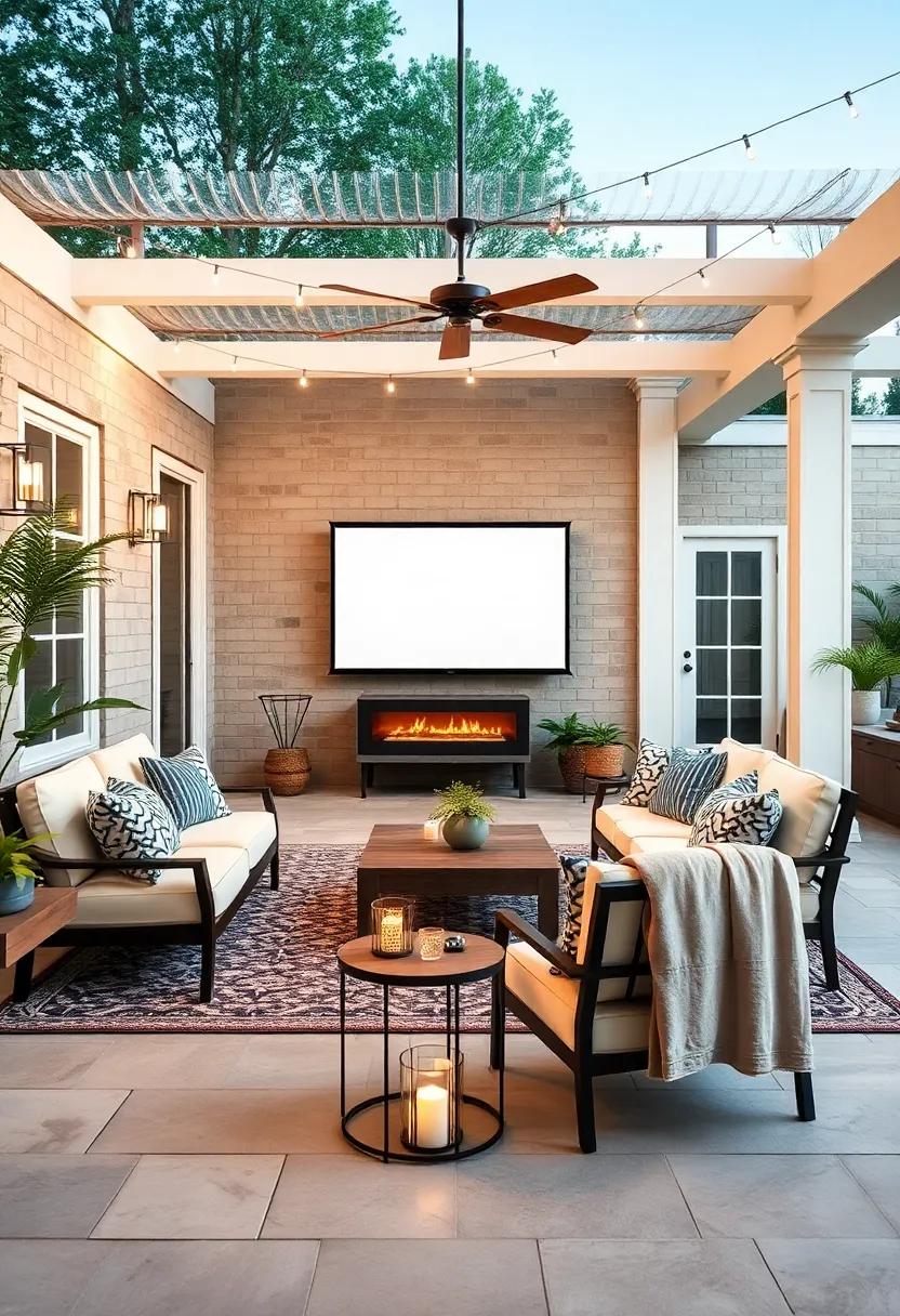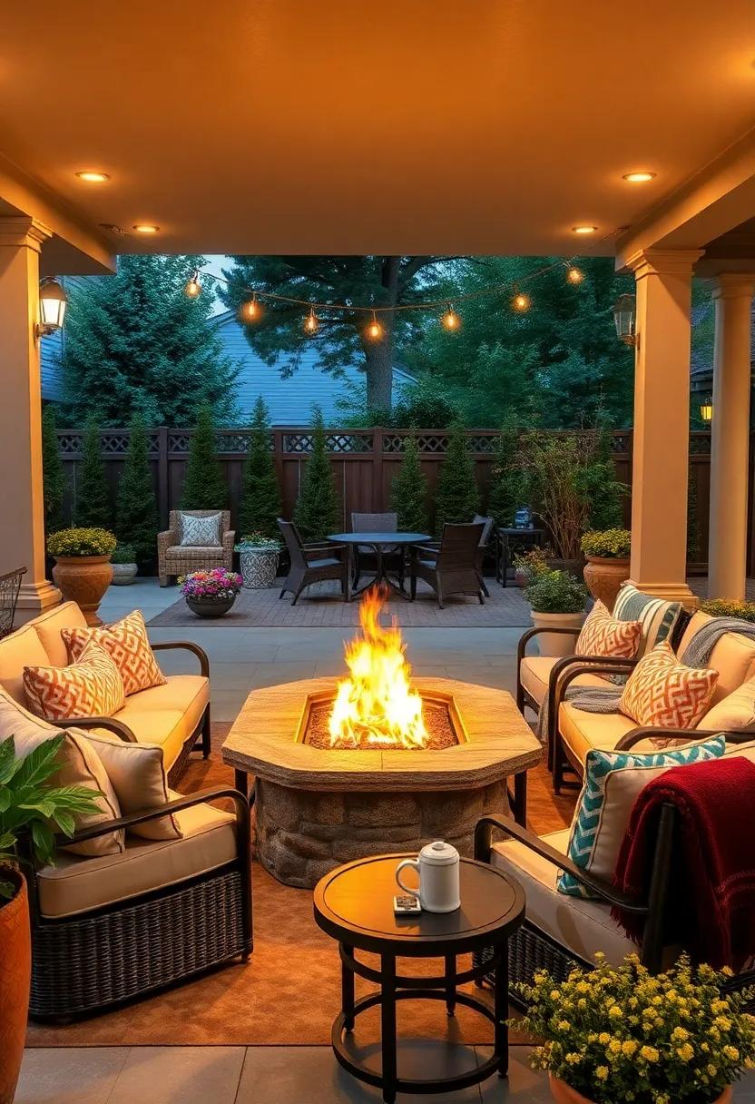 Cozy Fire Pit retreat: Transform your patio into a warm gathering spot with a fire pit surrounded by plush seating and soft blankets, perfect for cooler evenings