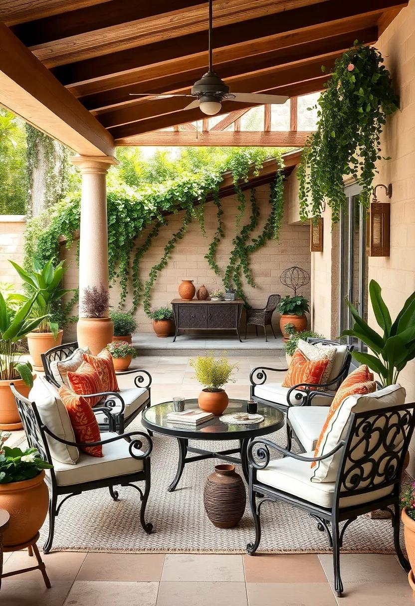Mediterranean Escape: Embrace the warmth of the Mediterranean with terracotta pots, wrought iron furniture, and cascading vines to create a sun-soaked haven