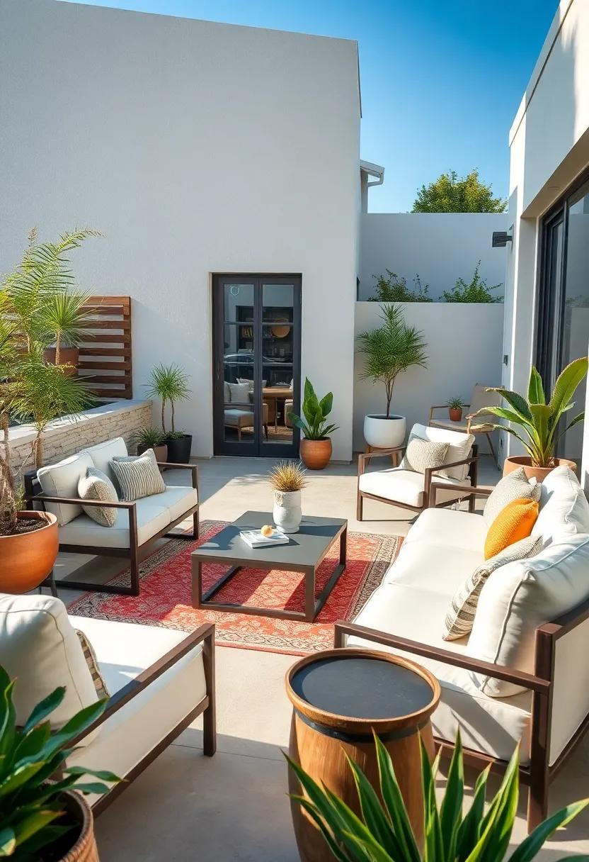 Transform your outdoor space into a cozy retreat by layering a variety of floor cushions, poufs, and soft blankets atop a large, textured rug. Choose cushions in an assortment of colors and patterns to bring in the vibrant spirit of bohemian style. This setup encourages relaxation, whether you’re hosting friends for a casual evening or enjoying a quiet moment with a book. For even more comfort, select poufs that double as seating and side tables, providing both functionality and flair.