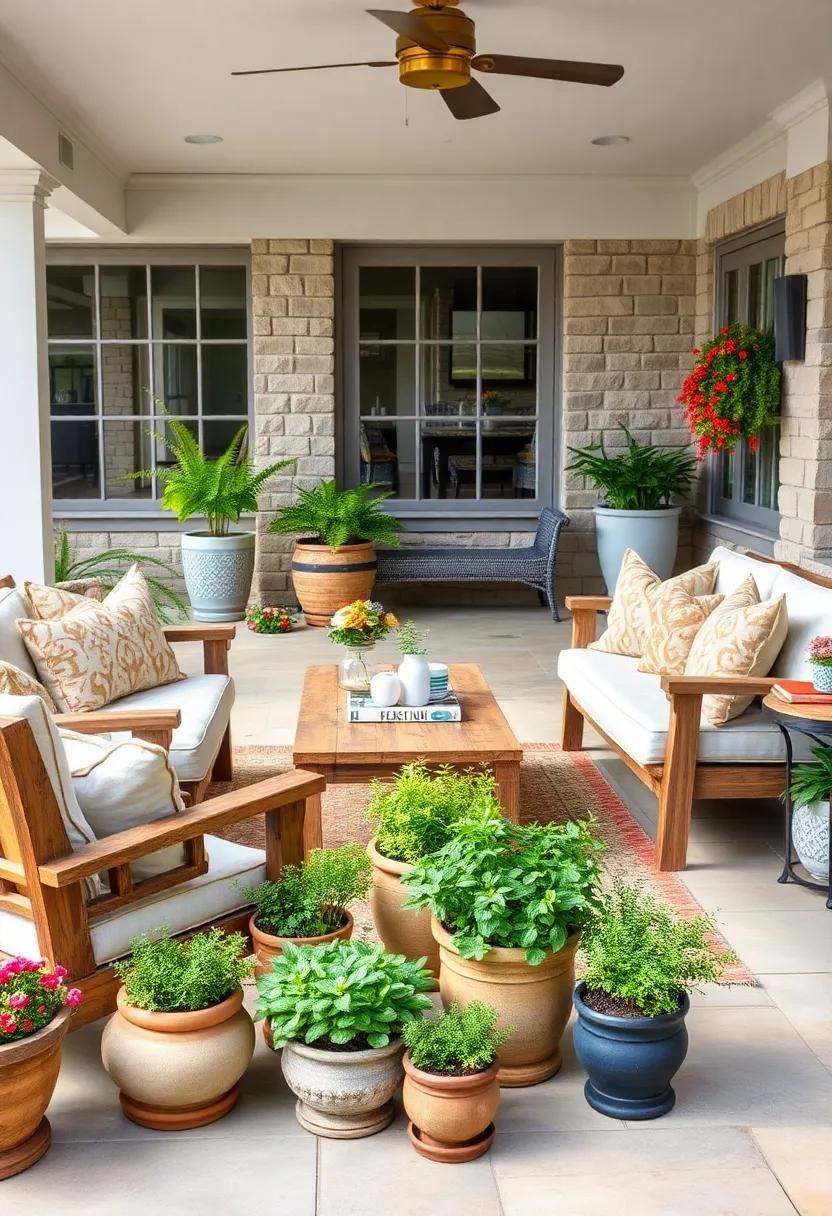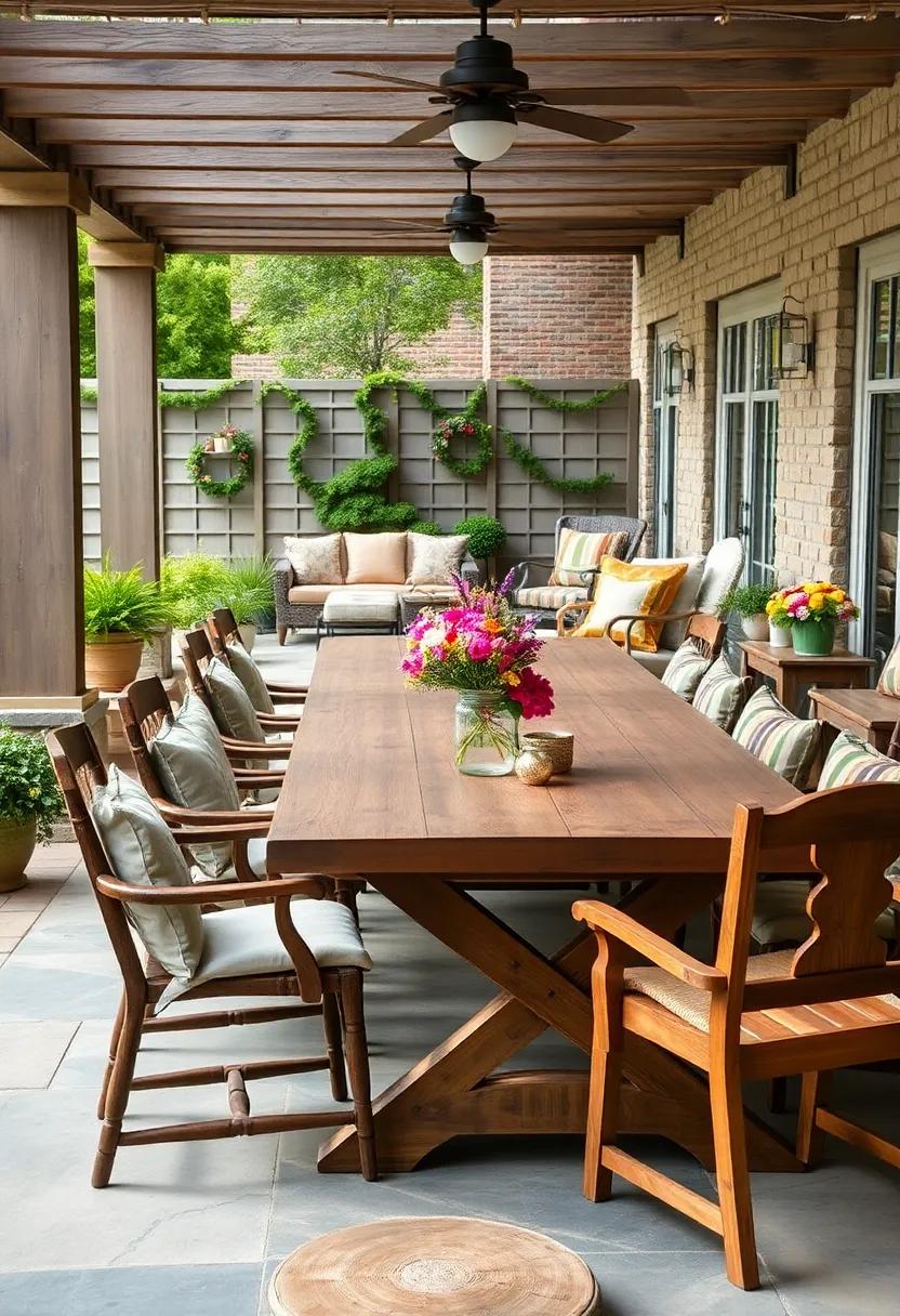 Rustic Farmhouse Feel: Opt for reclaimed wood furniture paired with soft, neutral fabrics and an array of potted herbs to bring a charming, rustic touch to your outdoor space