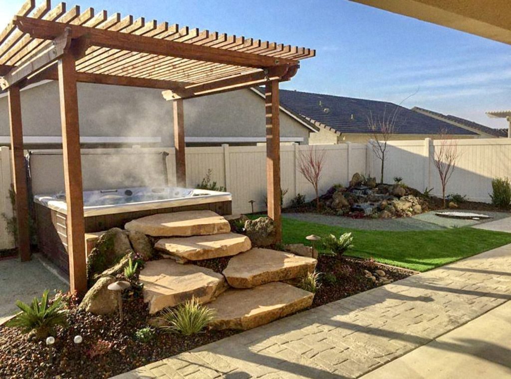 14. Compact Backyard with Hot Tub and Natural Stone Steps