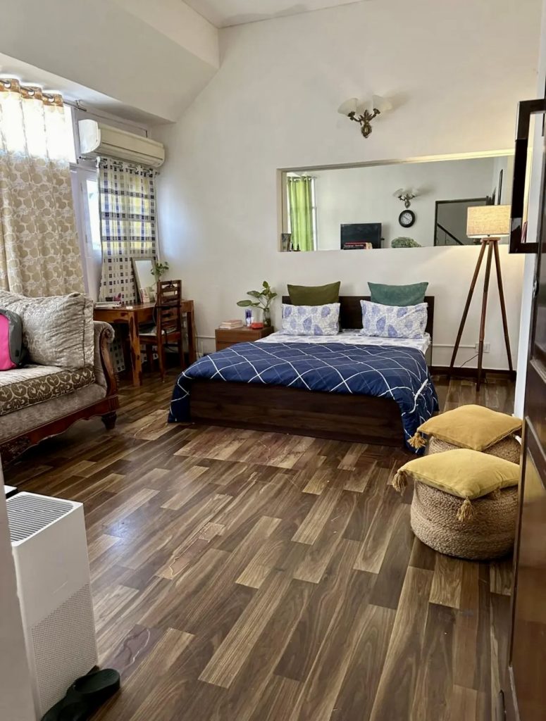 For lovers of boho style, this studio layers plants, vintage rugs, and cozy textiles to create a warm, lived-in feel. The bed is positioned near the balcony to maximize natural light, while the sofa and workspace maintain an open, practical layout. Ideal for couples sharing a 500 sq ft studio, every element feels intentional without being forced, offering a perfect urban sanctuary.