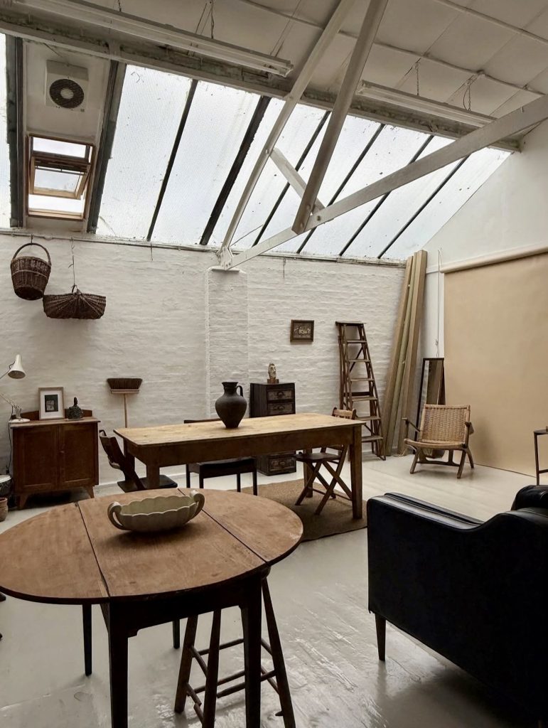Ideal for creatives, this rustic studio features raw wood furniture and skylights that flood the space with natural light. Multi-purpose pieces like farmhouse tables serve as work surfaces, complemented by vintage chairs in a cozy, minimalist setting. High ceilings enhance mood and openness, proving that volume can be as impactful as square footage in small apartments.