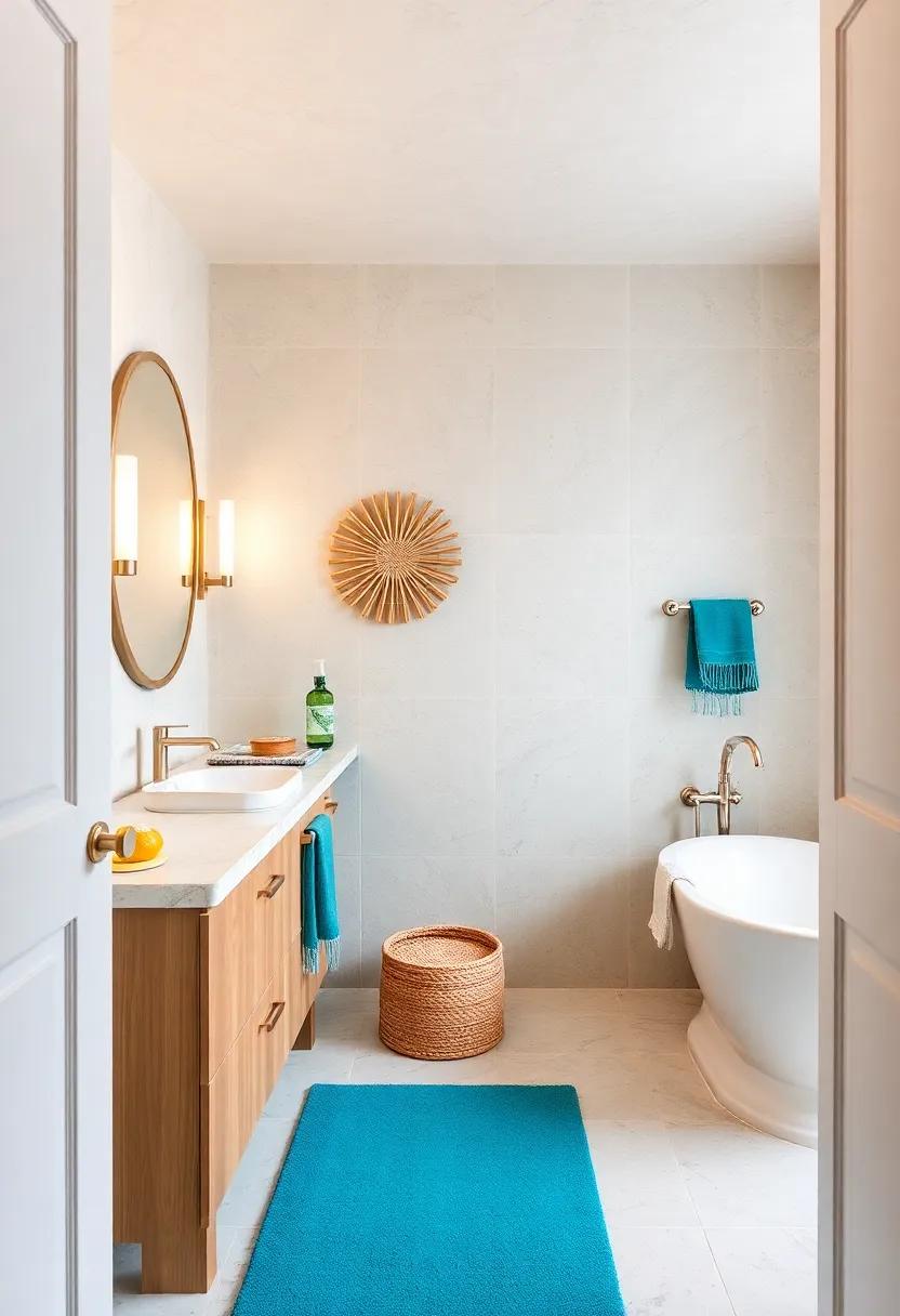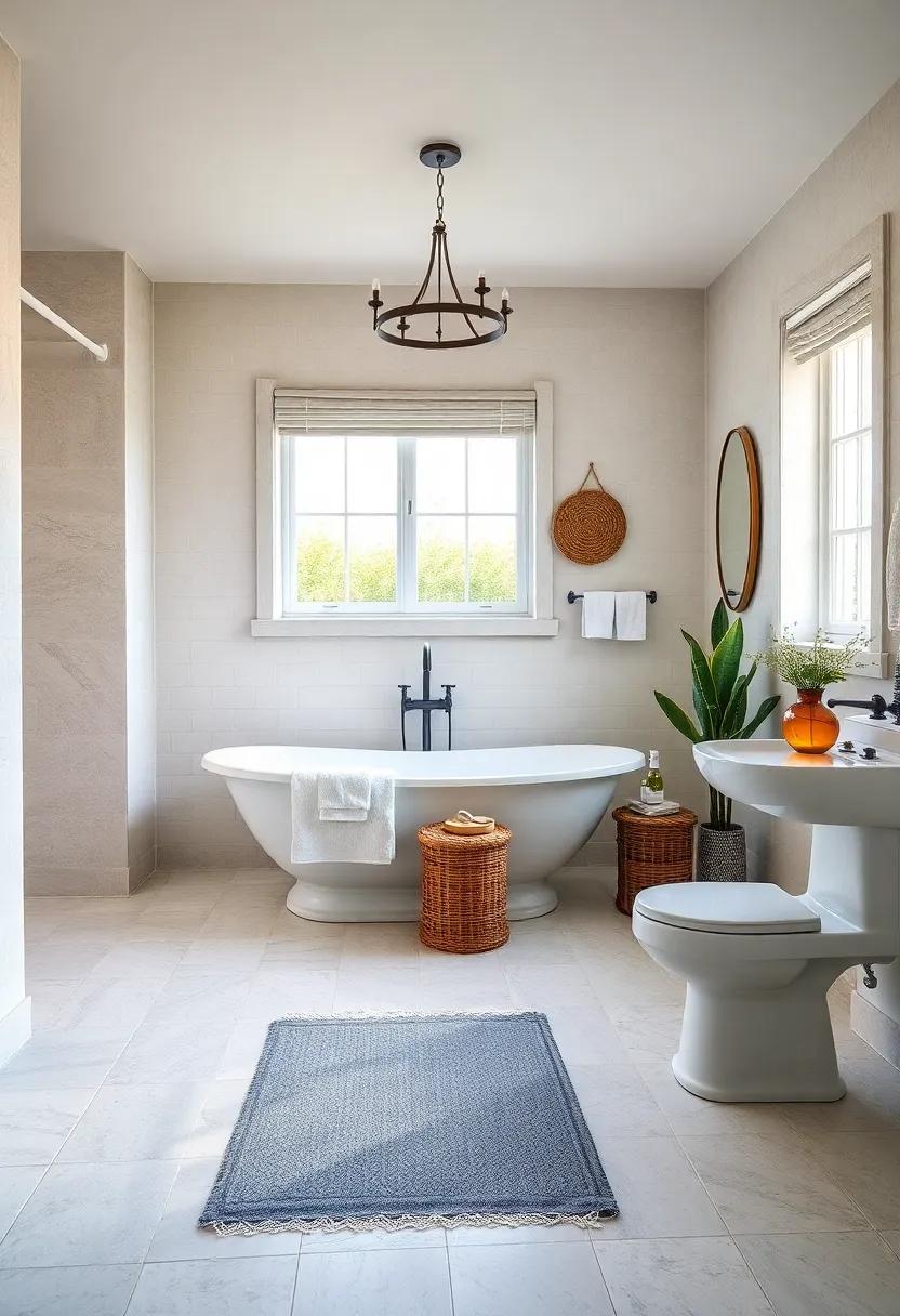 Layer Textiles: Combine various textures through rugs, towels, and accessories to create a cozy feel while maintaining an airy look