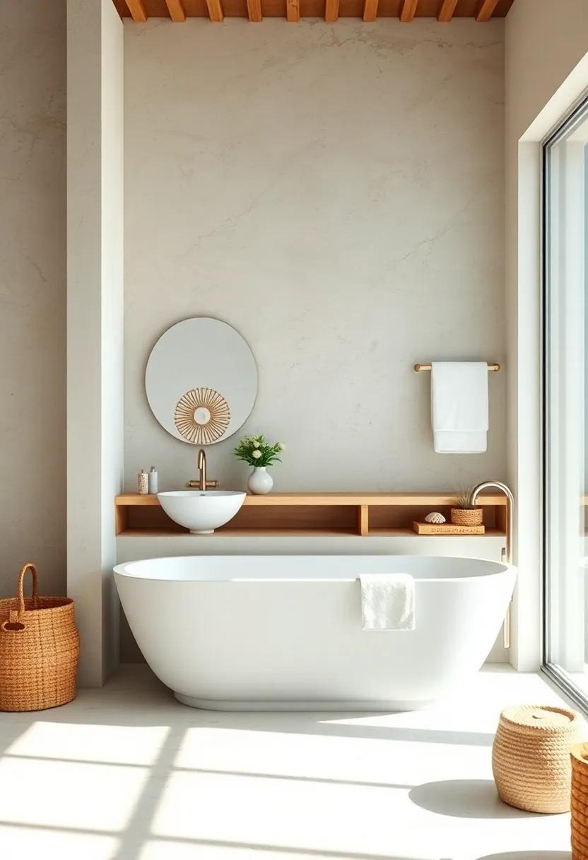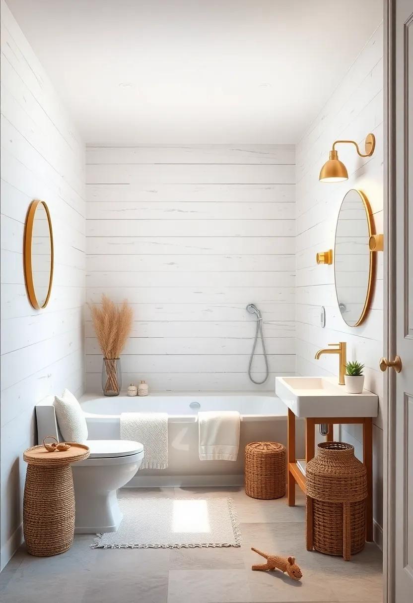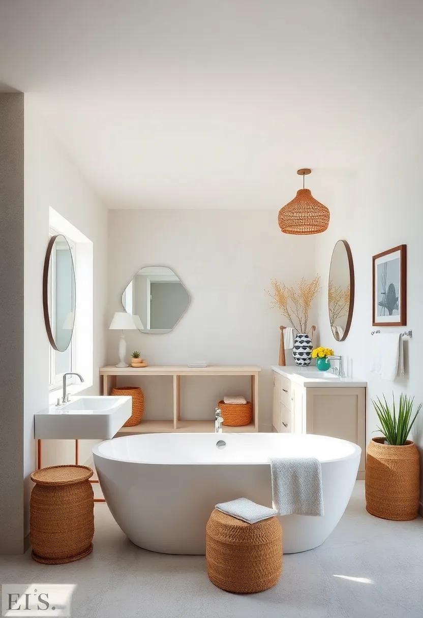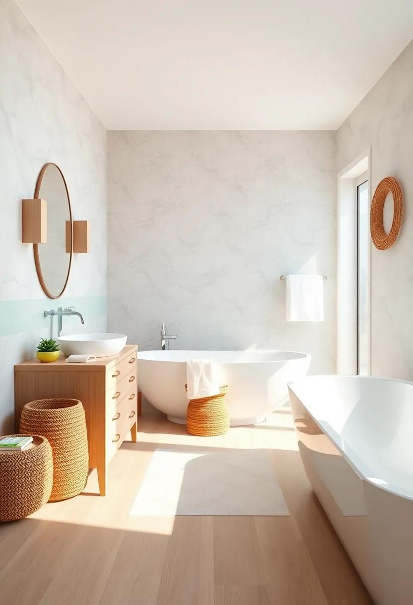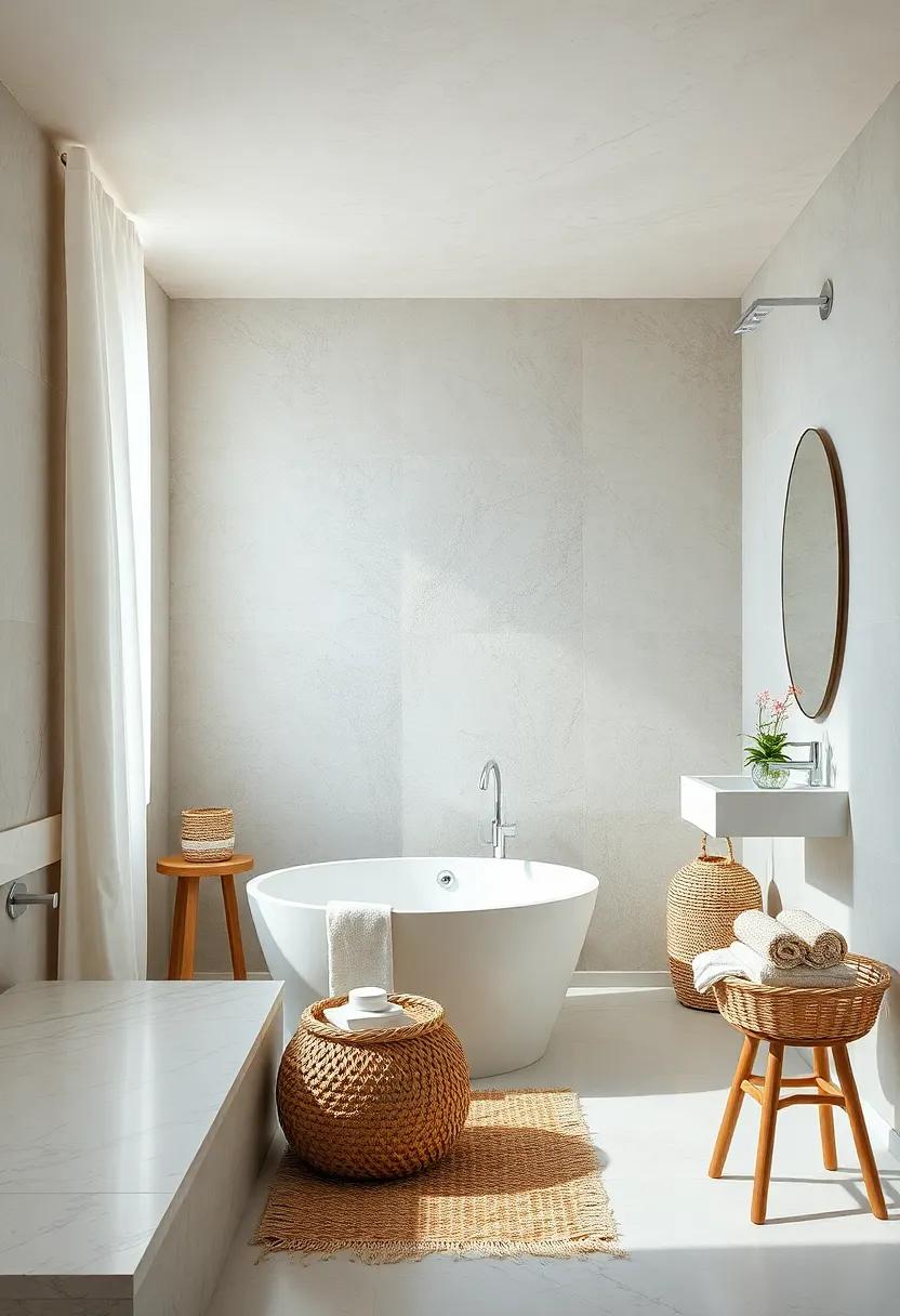 Feature Woven Baskets: Add texture and organization with stylish woven baskets for storing towels and toiletries, perfect for that beachy vibe