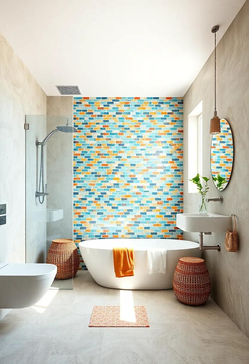 transform your bathroom into a coastal retreat by integrating colorful, mosaic tiles or beach-themed patterns. Consider using vivid turquoise and sunset orange tiles to create a dazzling shower wall that resembles the ocean at sunrise.this playful approach to tile selection not only enhances the visual appeal but also adds an exciting layer of texture to the space. Pairing these tiles with natural stone or light wood accents can maintain an airy feel while making the colors pop.