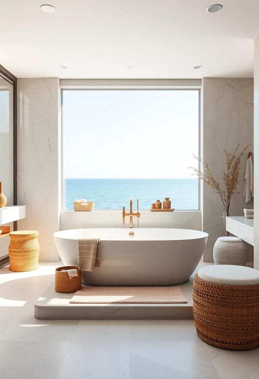 Integrate a Bathtub Oasis: If space allows, a freestanding tub can serve as a stunning centerpiece for relaxation that mimics luxury spa settings by the sea
