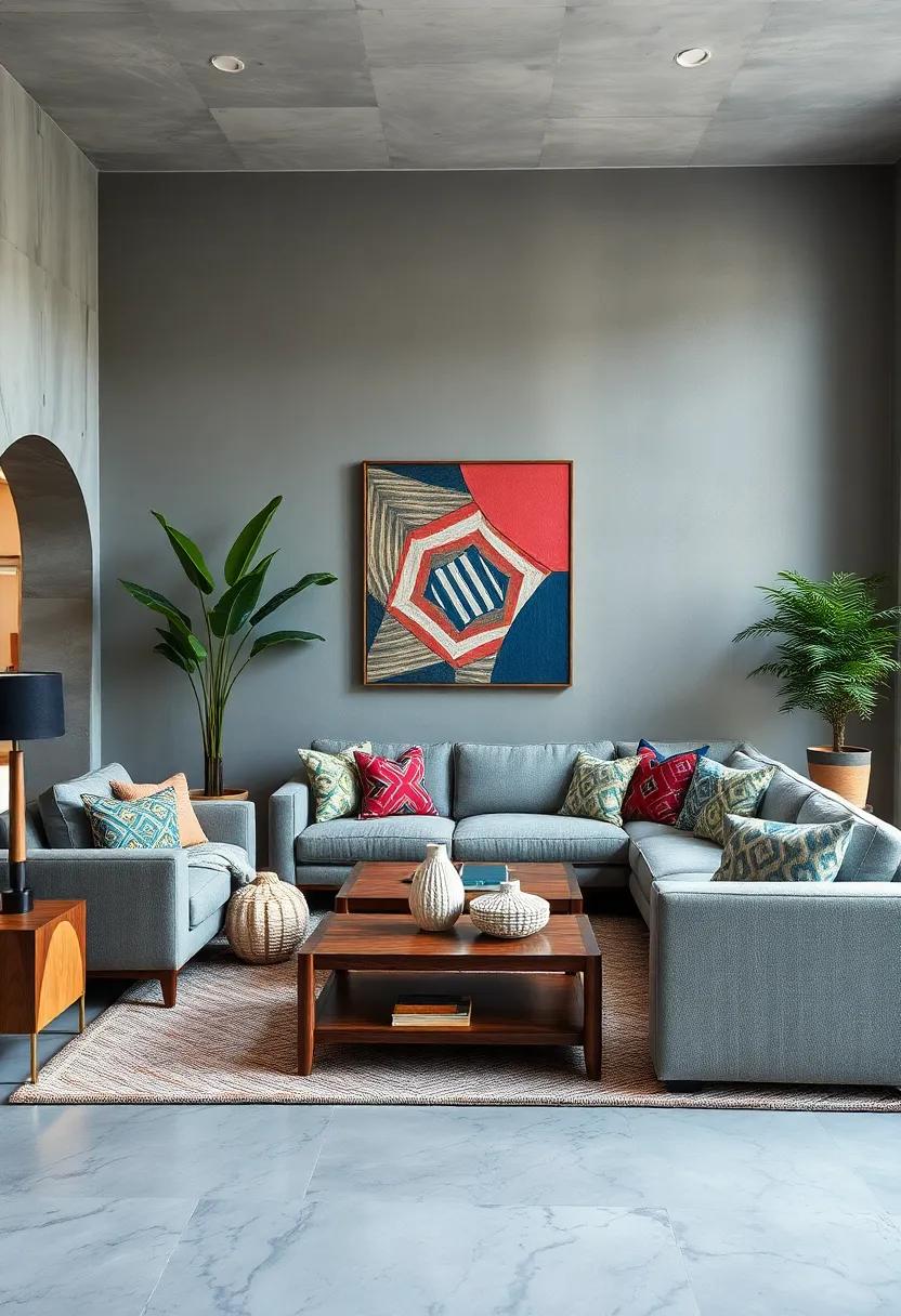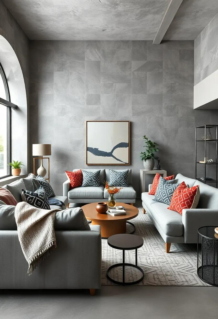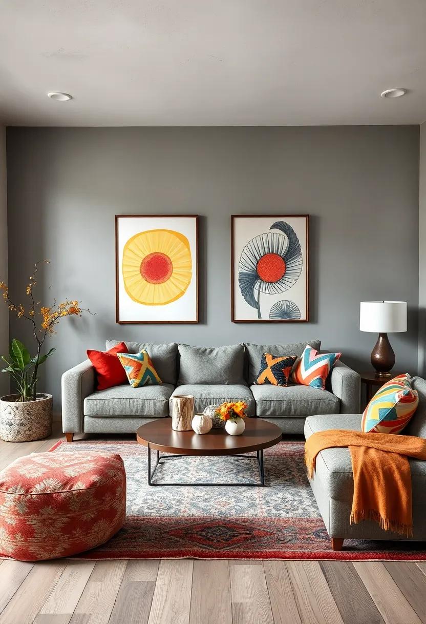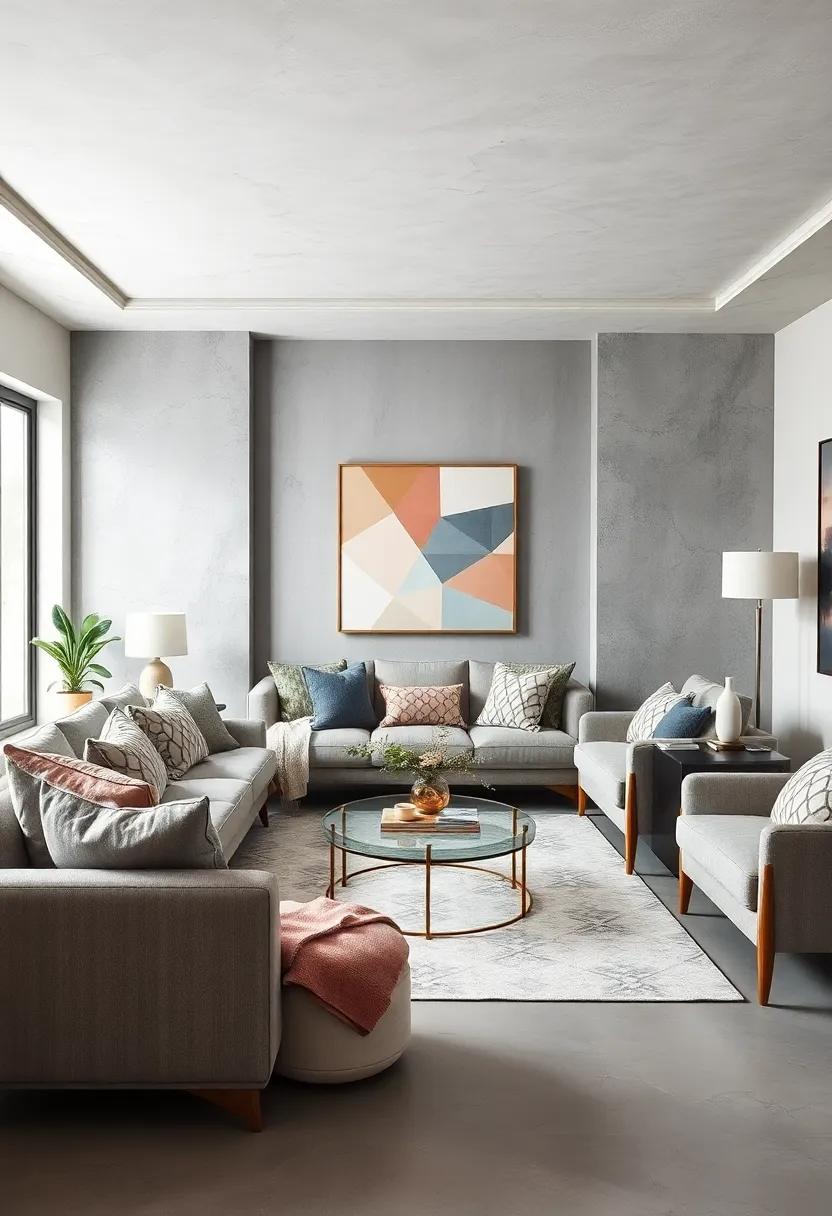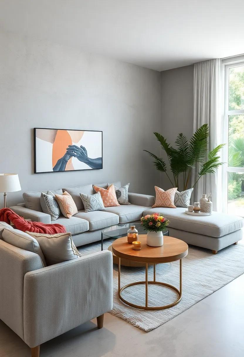 From modern to bohemian, this approach allows for customization, ensuring your living room reflects your unique style. Combine the softness of gray with lively patterns for a balanced space that feels both relaxing and engaging—transforming your home into a stunning sanctuary.