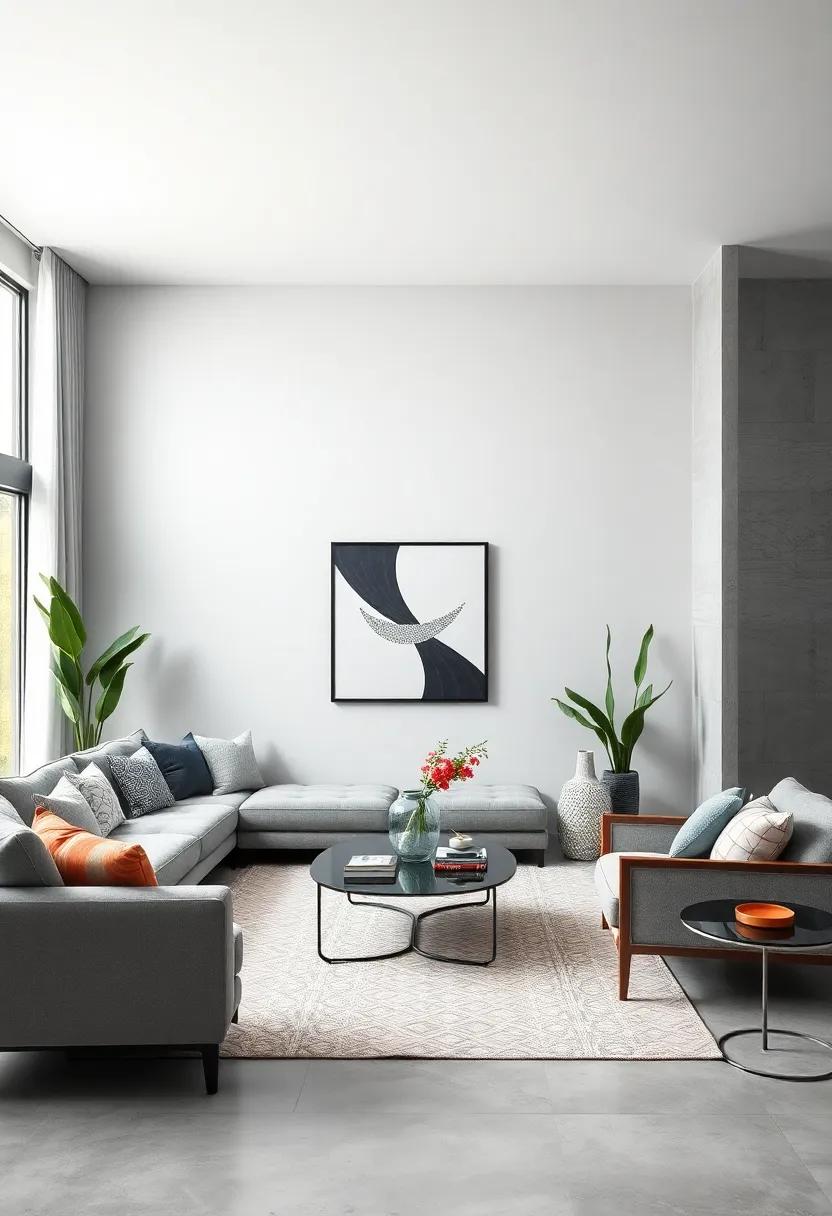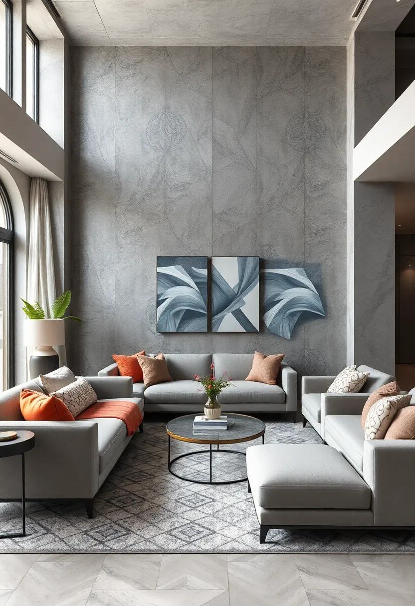 Incorporating statement furniture into a space adorned with soothing gray tones can transform an ordinary living room into a stunning showcase of design. Bold geometric furniture pieces, whether they are a striking coffee table or a uniquely shaped armchair, act as focal points that draw the eye and create conversation. Consider angular chairs that challenge traditional forms or a hexagonal coffee table that adds a layer of intrigue to your lounge area. These pieces can be crafted from a variety of materials—including metal, wood, or upholstered fabrics—that play beautifully against a gray backdrop.