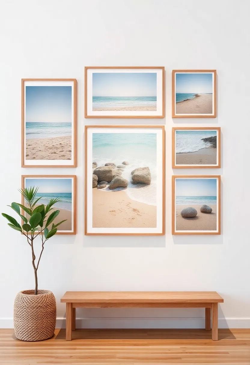 “Coastal Memories”: A collage of framed photographs capturing the essence of sandy toes and salty breezes, perfect for creating a personal narrative on your walls
