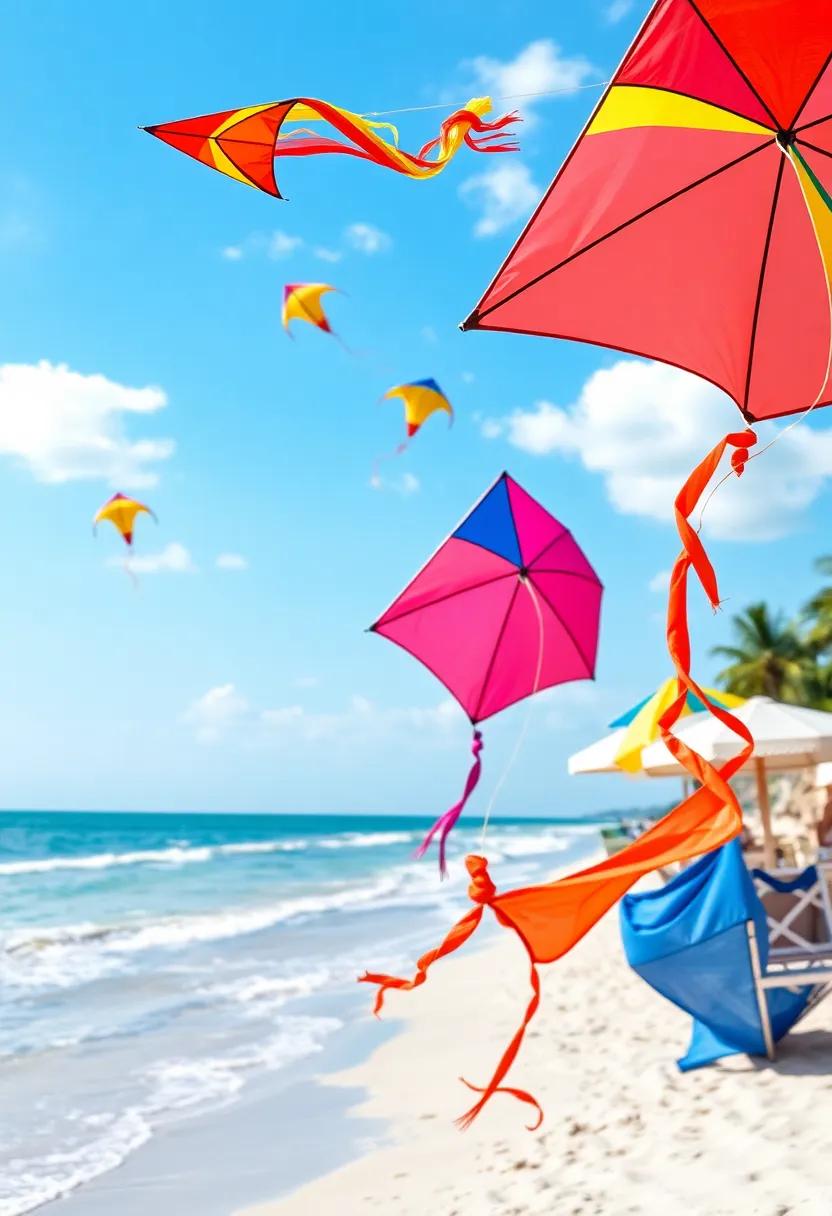 - Colorful kites dancing in the ocean breeze, echoing carefree childhood moments.