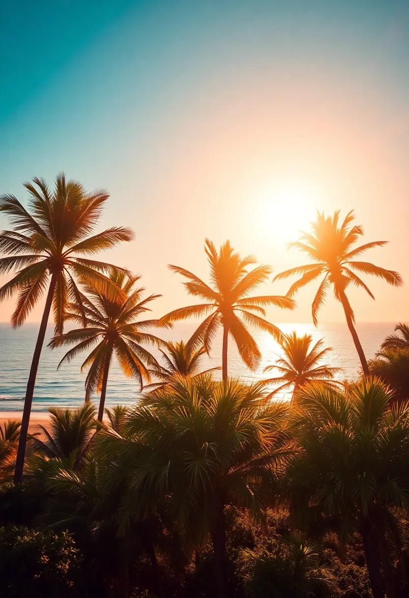 “Palm Paradise”: A vibrant depiction of swaying palm trees under the warm sun, bringing a slice of tropical paradise into your home