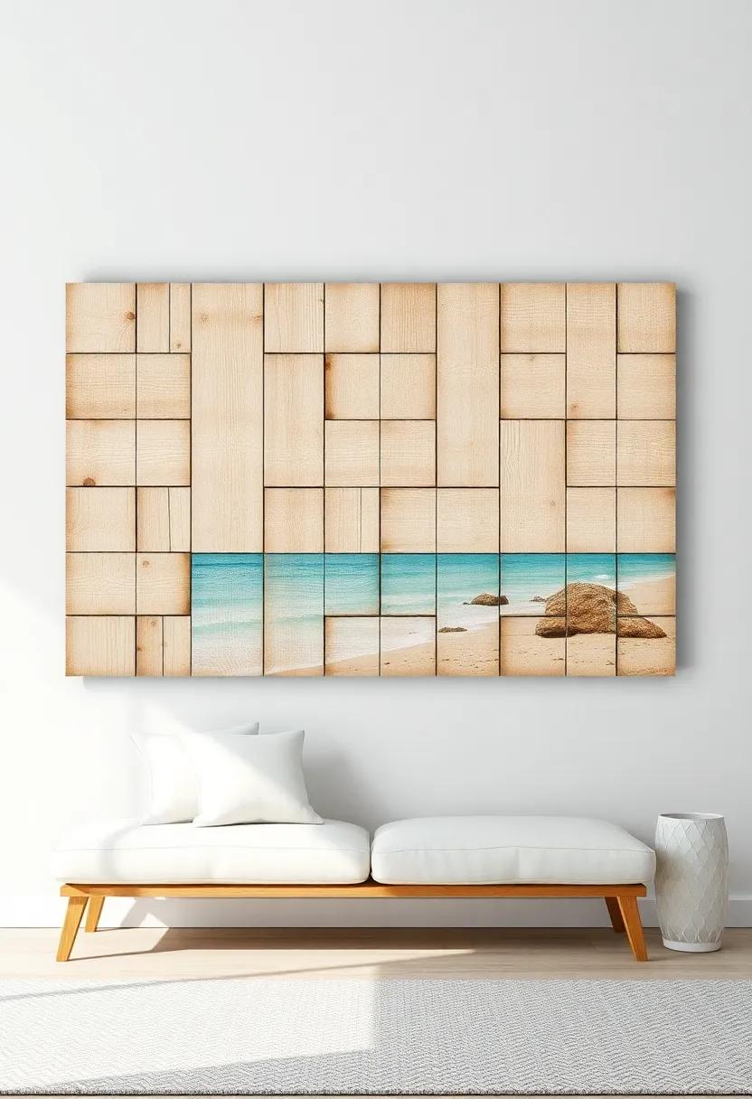This remarkable artwork does more than beautify a space; it serves as a conversation starter, sparking inventiveness and curiosity about the journey of each piece of driftwood. As guests gaze upon it, they can’t help but envision beaches, waves lapping against each piece of wood, and the sun setting on distant horizons. To further accentuate its coastal charm, consider pairing this artwork with elements like: