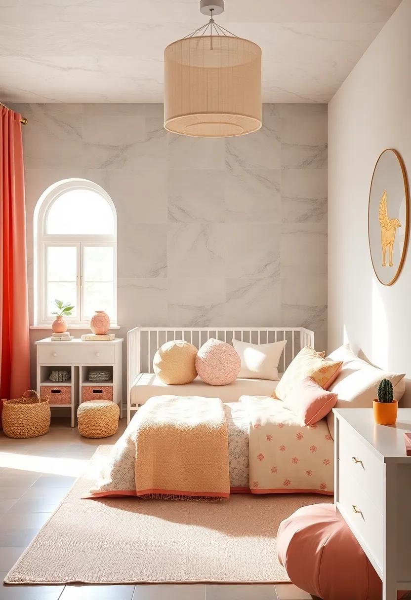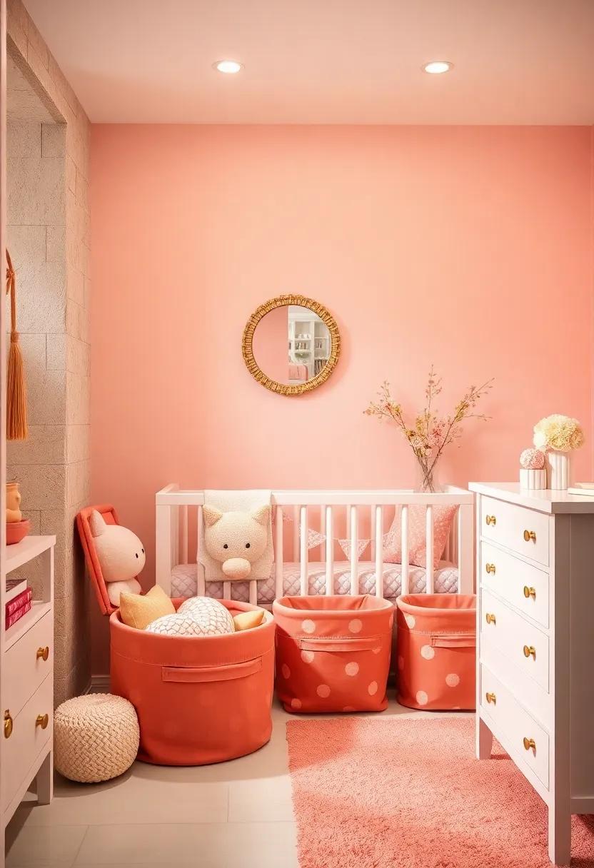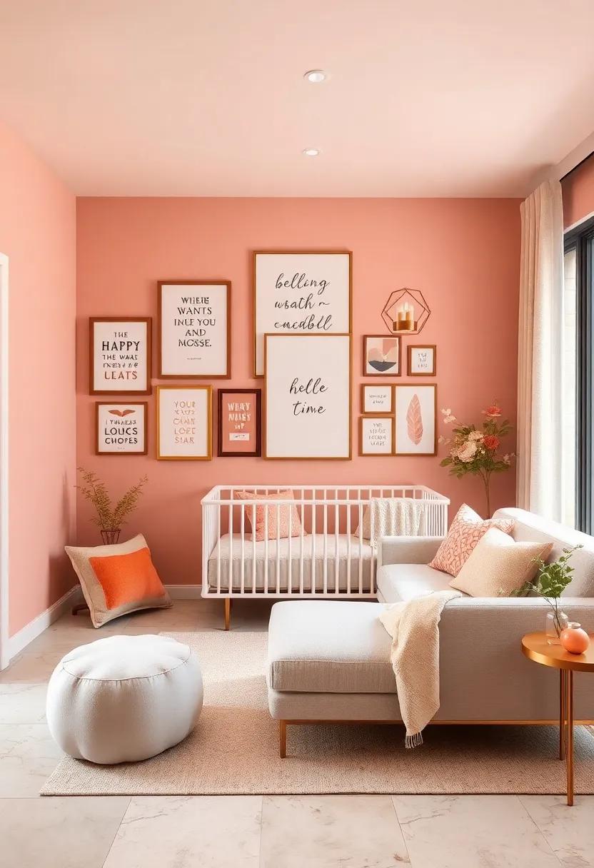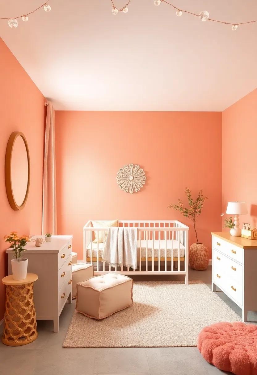 Embrace Soft Peach Walls: Paint the nursery in a gentle peach hue to create a warm, inviting atmosphere that sets the stage for comfort and creativity