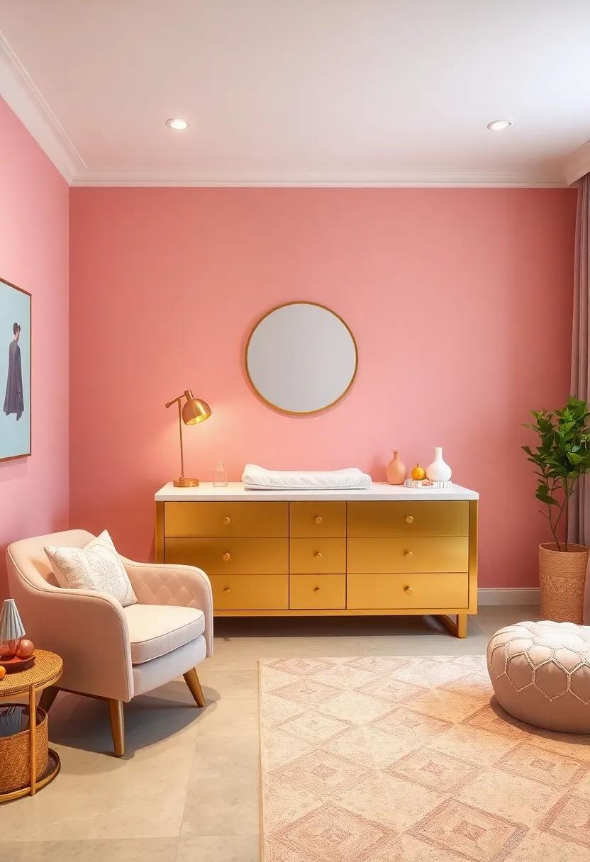 To truly customize your nursery aesthetic, think of pairing your gold-trimmed mirrors with other decor elements that complement the peach and gold theme. Here are some suggestions to consider: