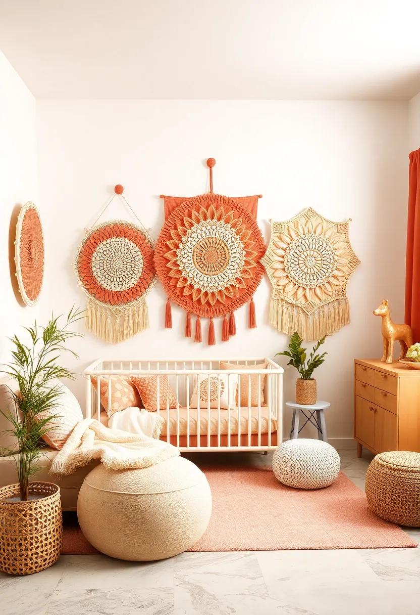 Playful Quilted wall Hangings: Use quilted wall hangings in different shades of peach and gold to add texture and warmth to the decor
