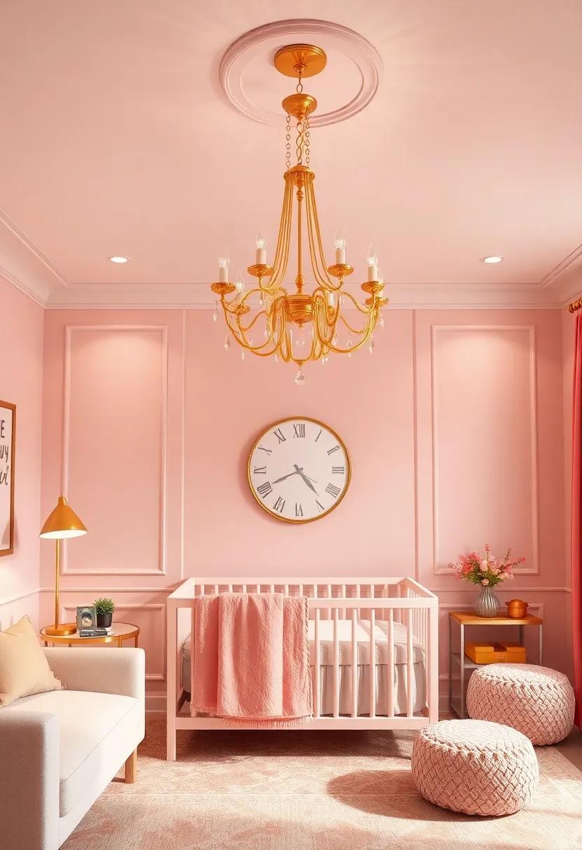 - Color Palette: Look for gold fixtures with finishes that coordinate with other metallics or peach accents in the nursery.