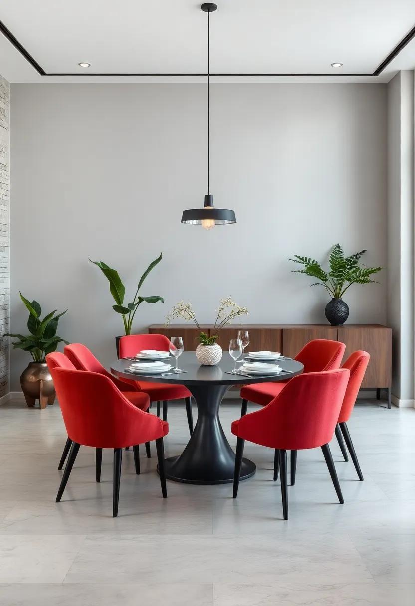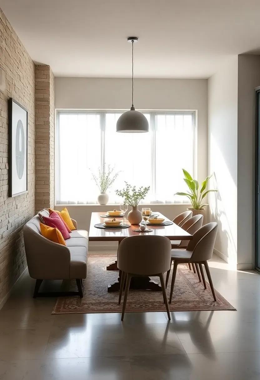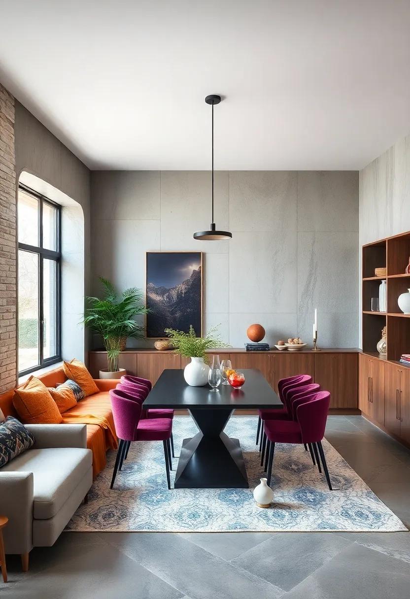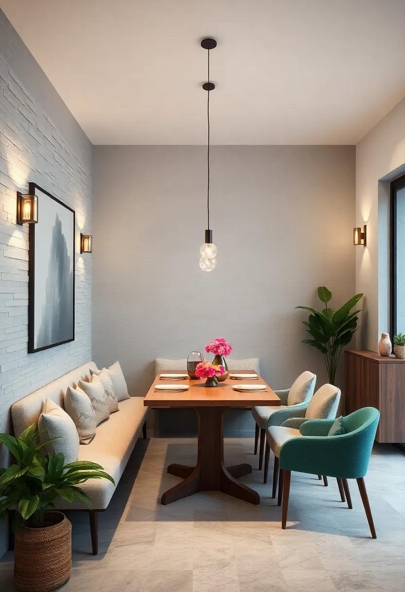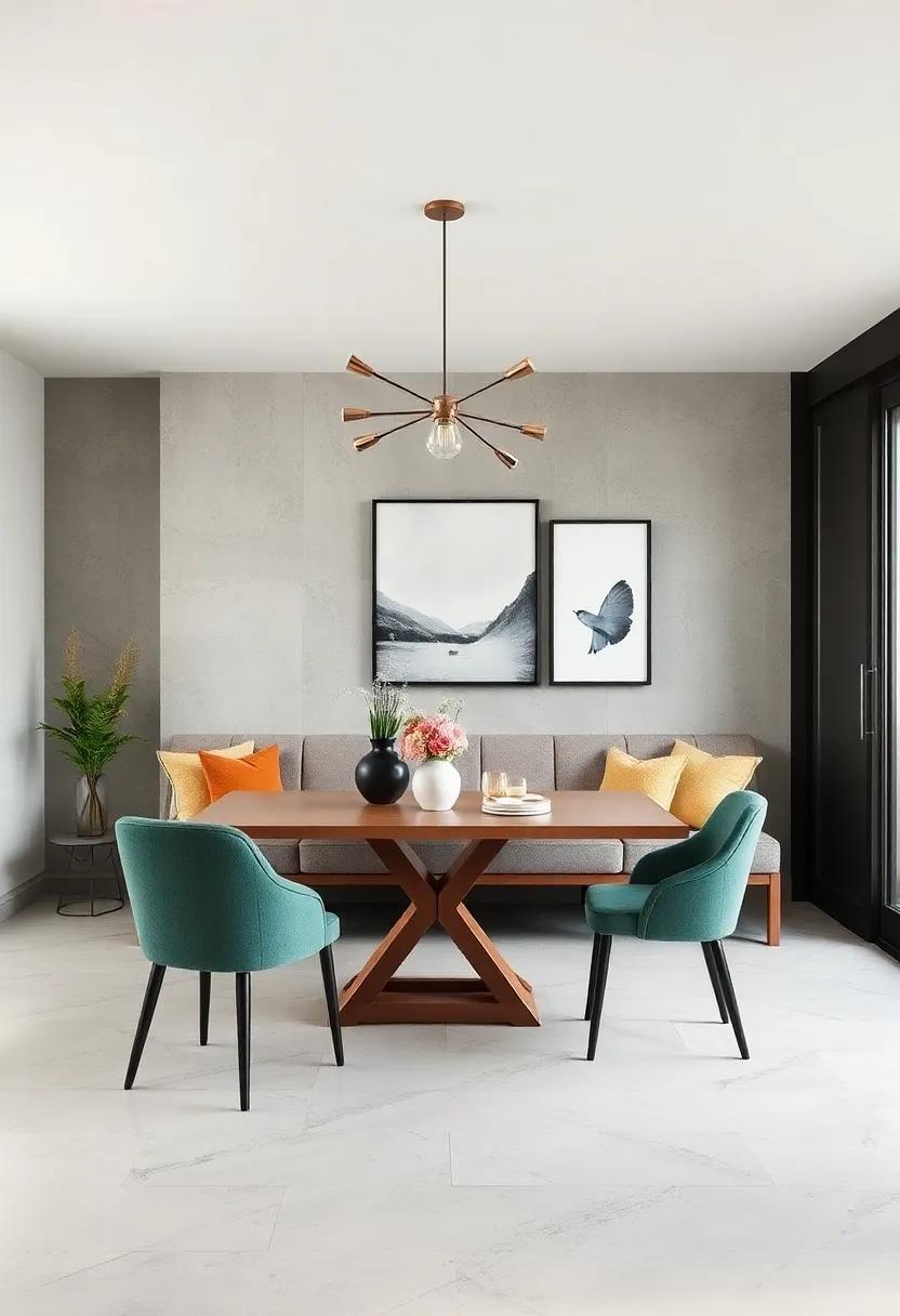 One of the most engaging ways to breathe life into a minimalist dining room is by blending different styles of chairs with a sleek bench.This approach effortlessly adds character while optimizing the available space. Consider incorporating bold colors alongside textured fabrics to create a dynamic contrast against a neutral dining table. A carefully selected mix of modern dining chairs paired with a rustic wooden bench not only creates a visual dialogue but also invites a sense of warmth and comfort around the table.