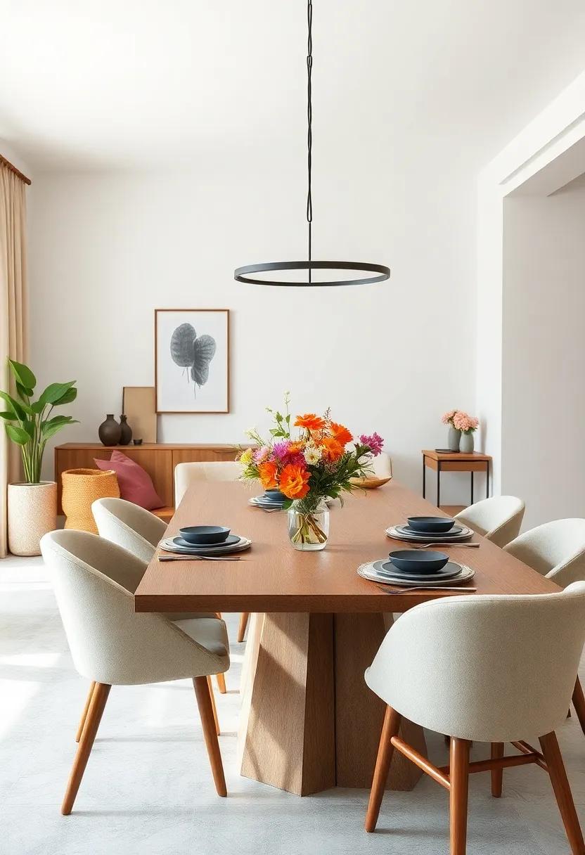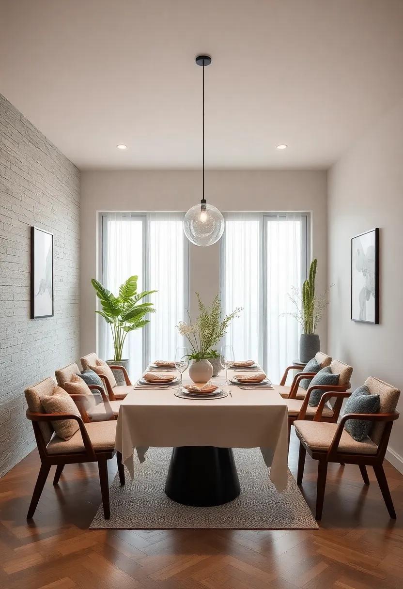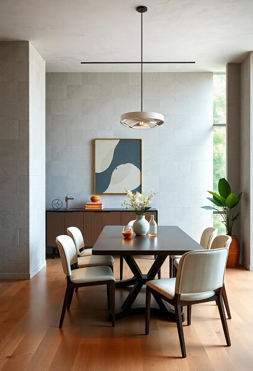 Creating a minimalist dining room doesn’t mean sacrificing depth or character. by incorporating a mix of materials, you can achieve visual intrigue without cluttering the space. Consider integrating wood, metal, and fabric in your design. for instance, a natural wooden dining table can serve as the focal point, beautifully balanced with sleek metal chairs.Add soft fabric elements like linen napkins or a subtle rug that harmonizes with the overall muted palette to anchor the space. Each texture tells a story, enhancing the dining experience in ways that complement the minimalist aesthetic.