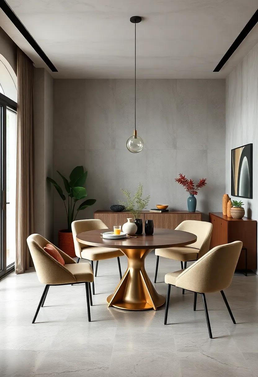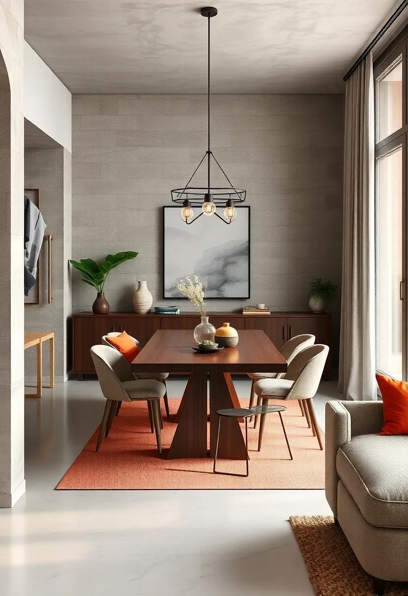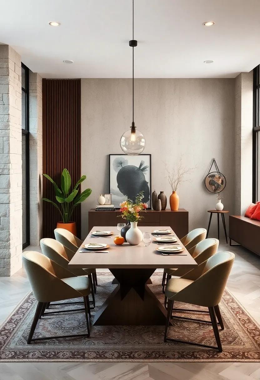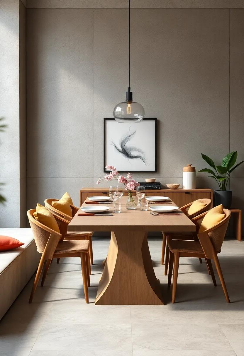 Creating a minimalist dining room doesn’t mean sacrificing depth or character. by incorporating a mix of materials, you can achieve visual intrigue without cluttering the space. Consider integrating wood, metal, and fabric in your design. for instance, a natural wooden dining table can serve as the focal point, beautifully balanced with sleek metal chairs.Add soft fabric elements like linen napkins or a subtle rug that harmonizes with the overall muted palette to anchor the space. Each texture tells a story, enhancing the dining experience in ways that complement the minimalist aesthetic.