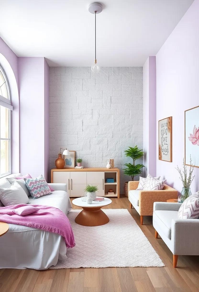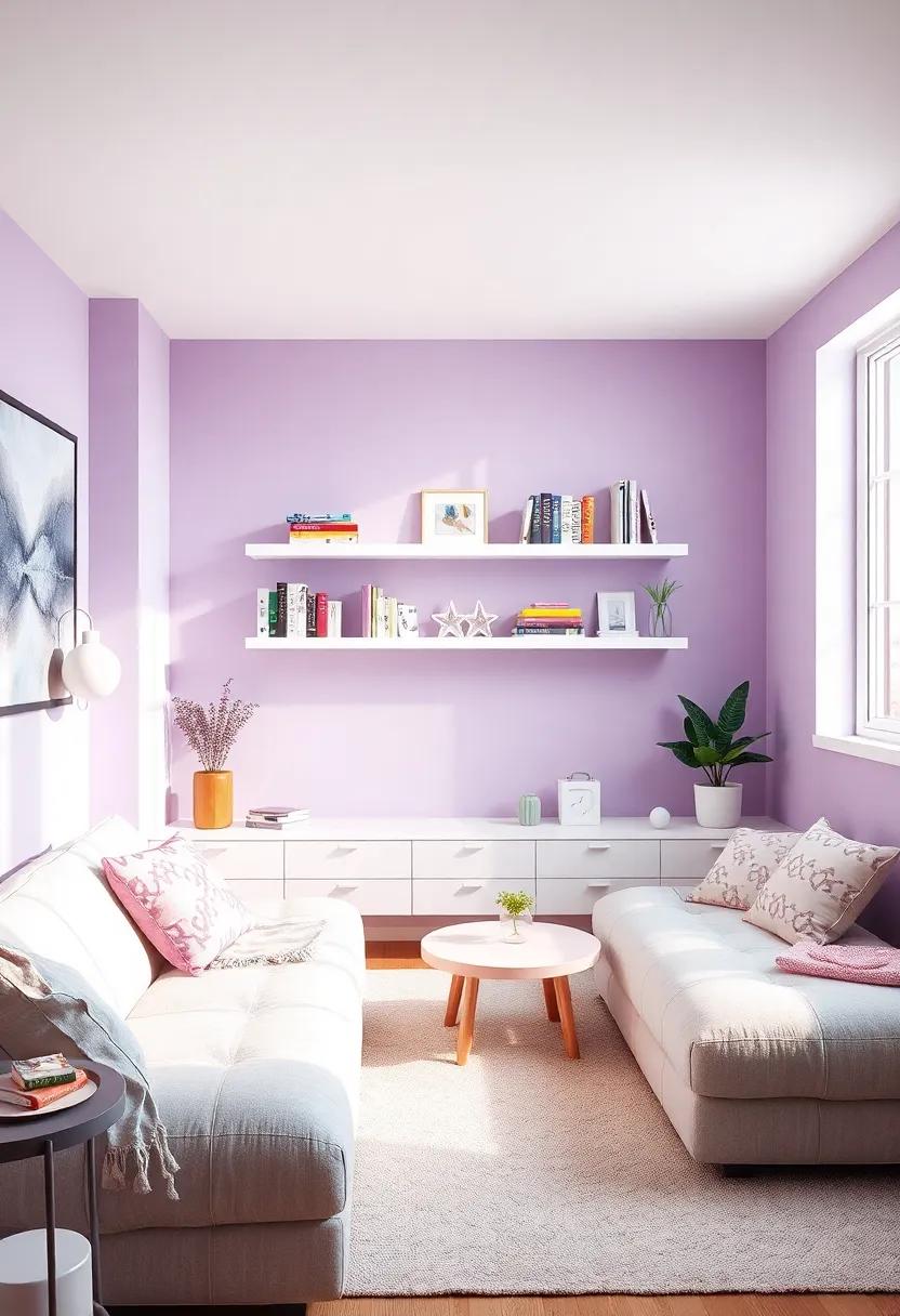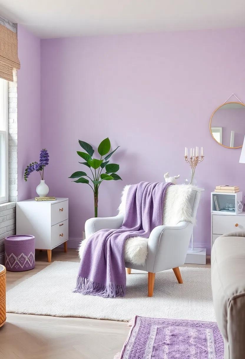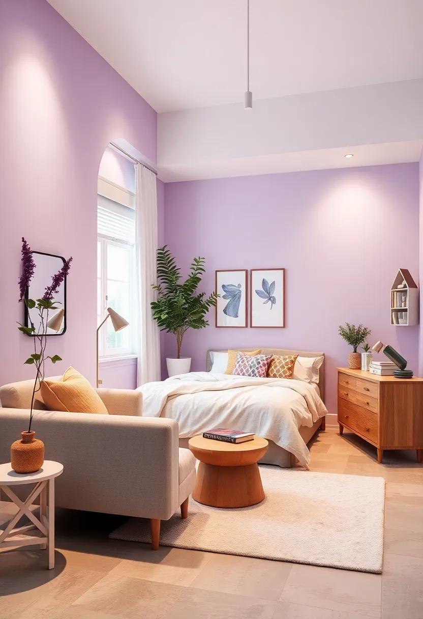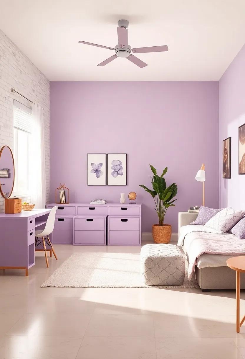 Create a serene atmosphere with lavender walls that evoke a sense of calm and creativity