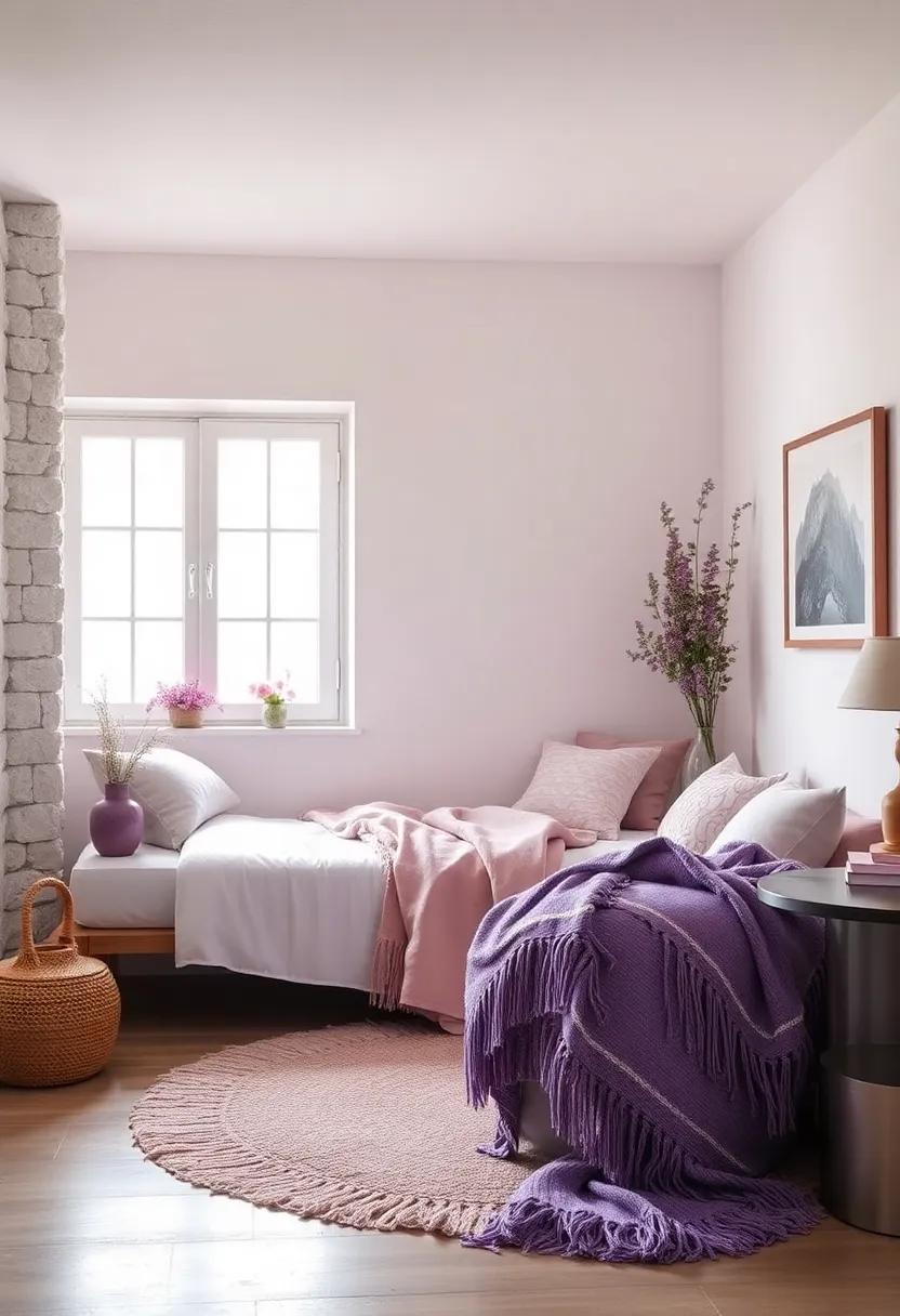To elevate the cozy appeal further, consider pairing the blanket with a few accent cushions in complementary shades of purple, cream, or even pastel pink. Think about the following options: