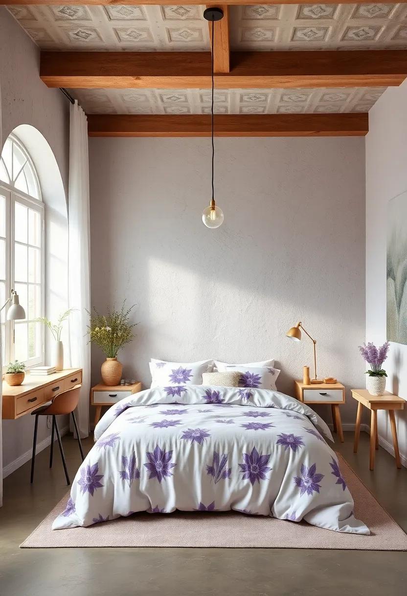 - Lavender bedding: Choose floral or abstract patterns to add texture.