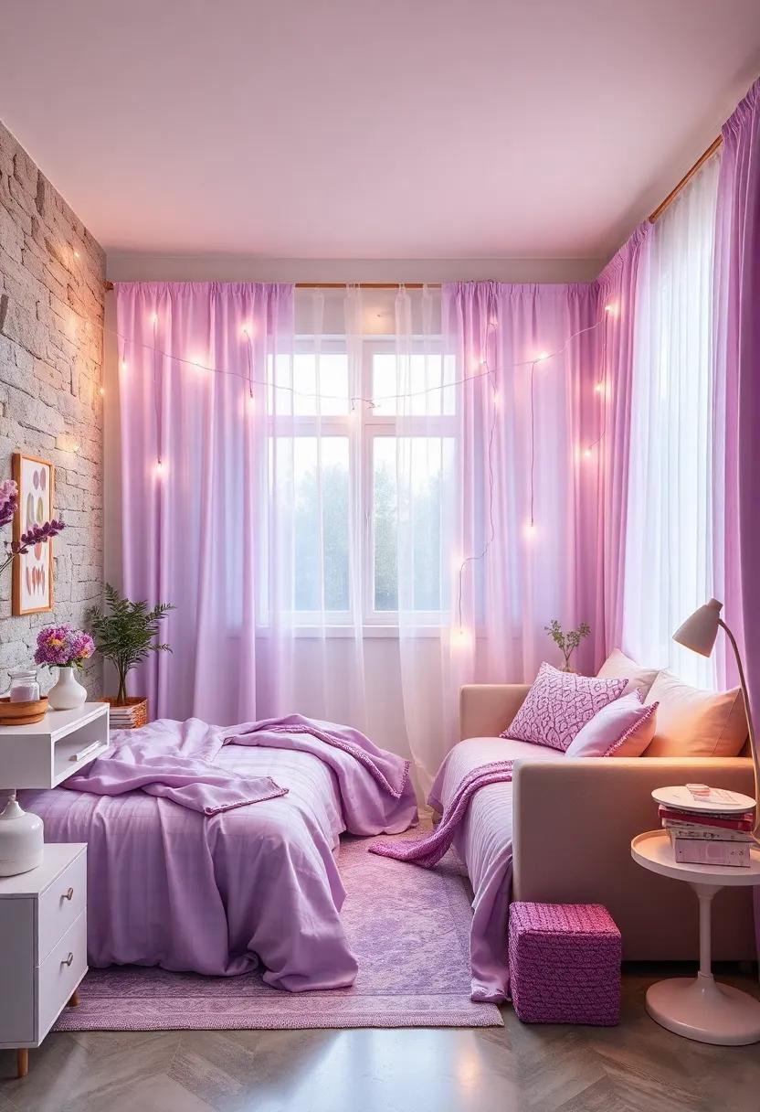 Transform your teen girl’s room into a whimsical retreat by incorporating string lights wrapped in lavender fabric. this combination not only adds a touch of sophistication but also creates a magical allure that can enhance any decor. To achieve this dreamy effect, start by selecting soft, warm-colored string lights that emit a gentle glow. Then, delicately wrap them in a sheer lavender fabric, allowing the lights to filter through and create an enchanting ambience. Scatter these whimsical light pieces around the room—on the headboard, along the window sills, or draped across the ceiling—to infuse charm and serenity.