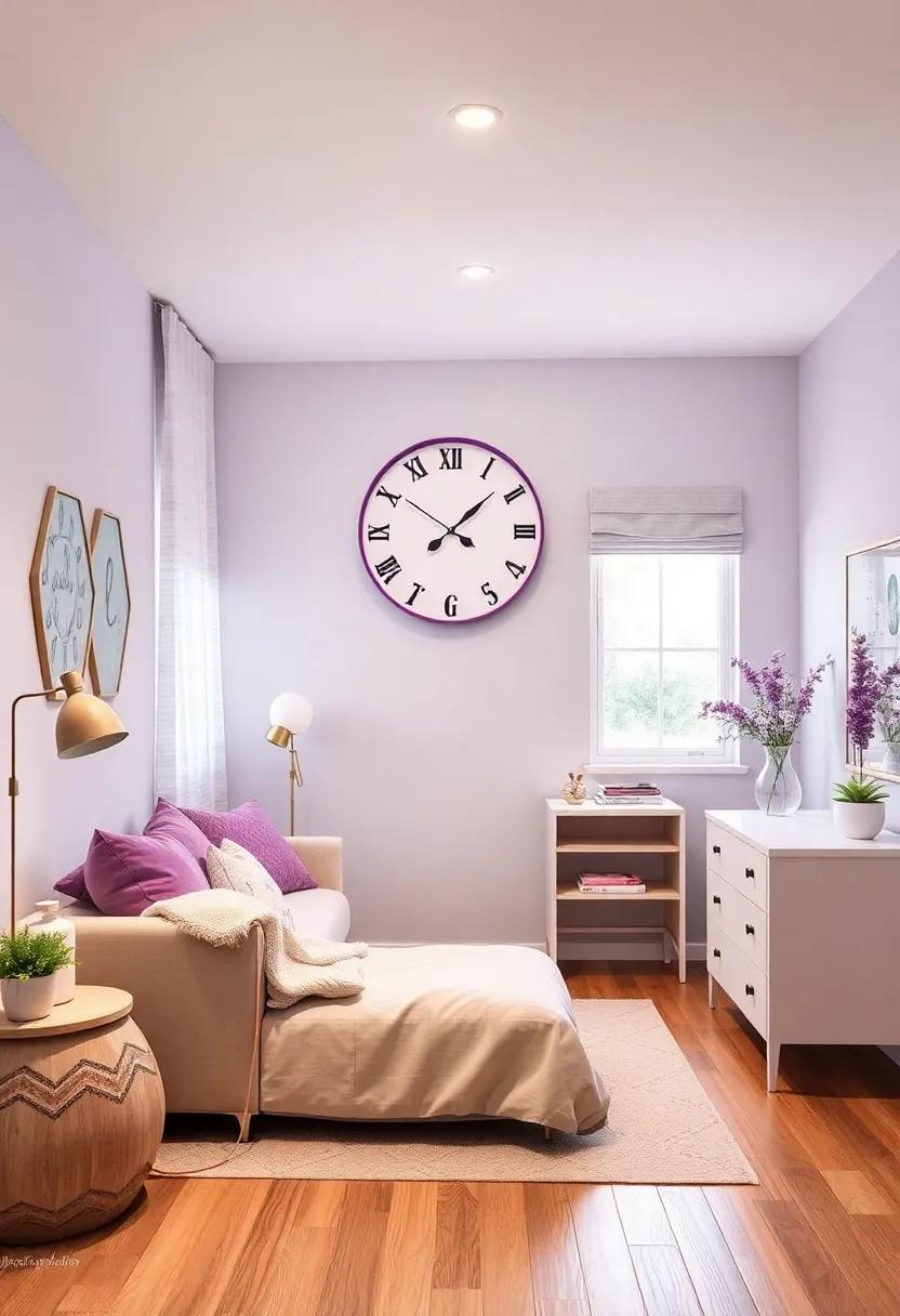 Finish with a lavender wall clock that not only serves a purpose but adds charm to the decor