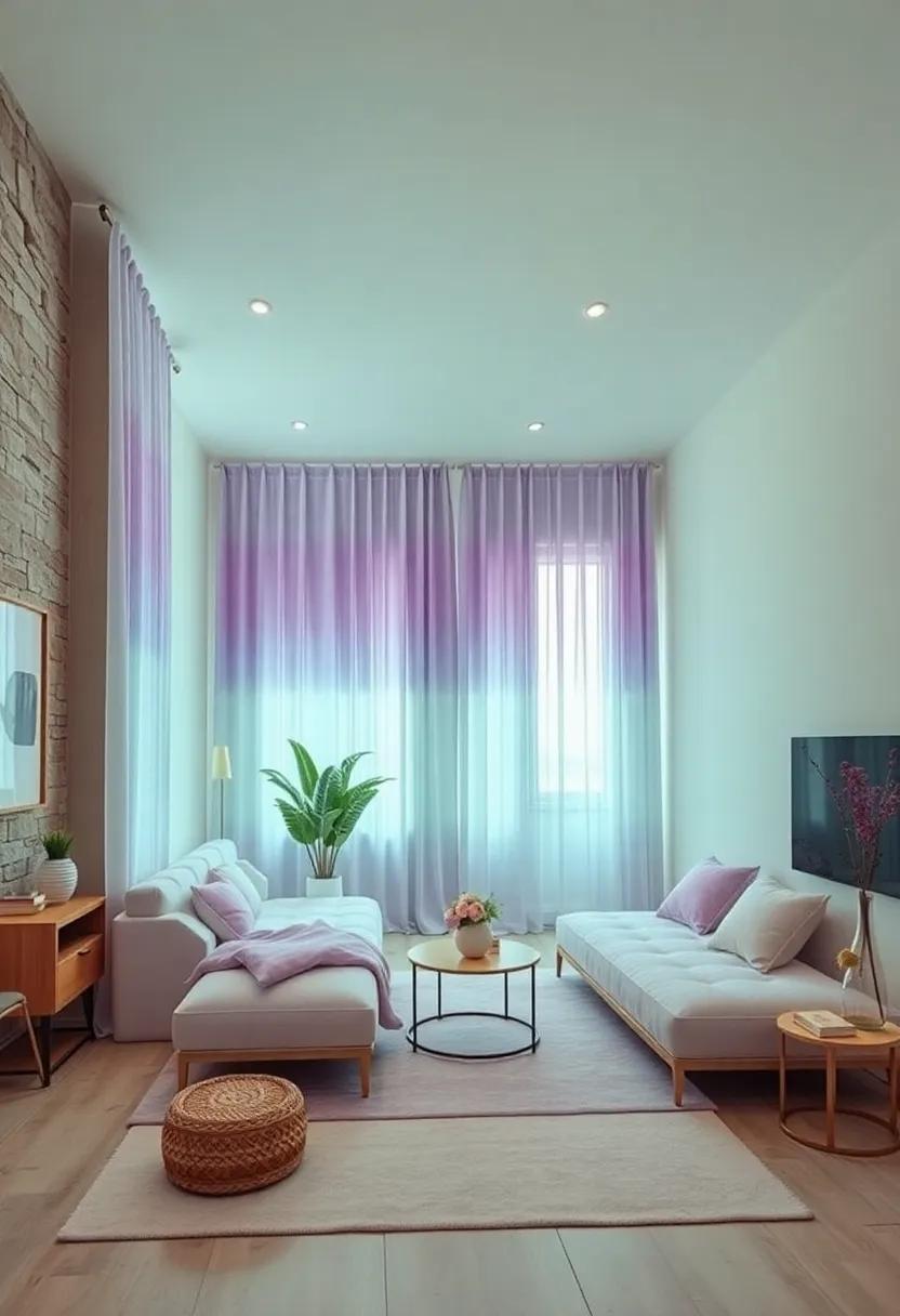 Incorporate lavender ombre curtains that flow gracefully from dark to light