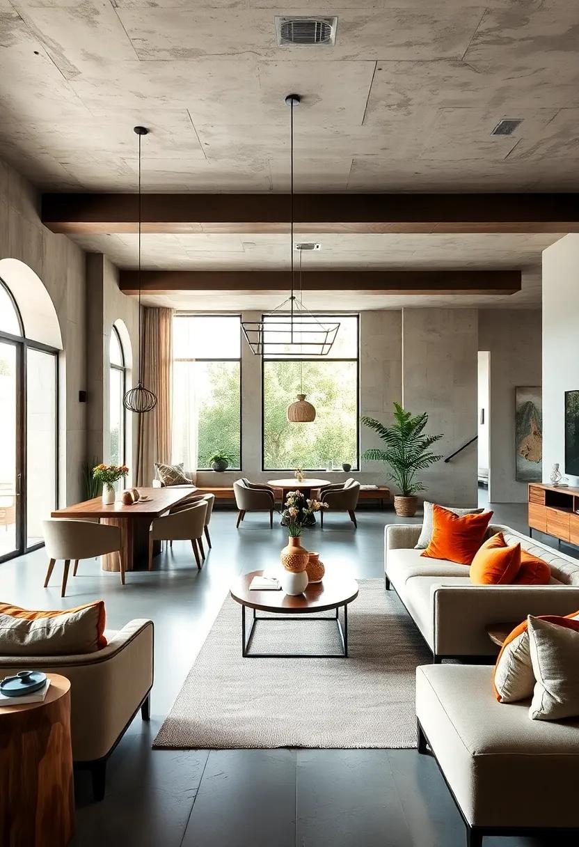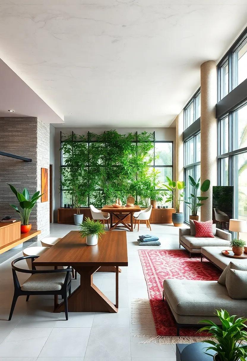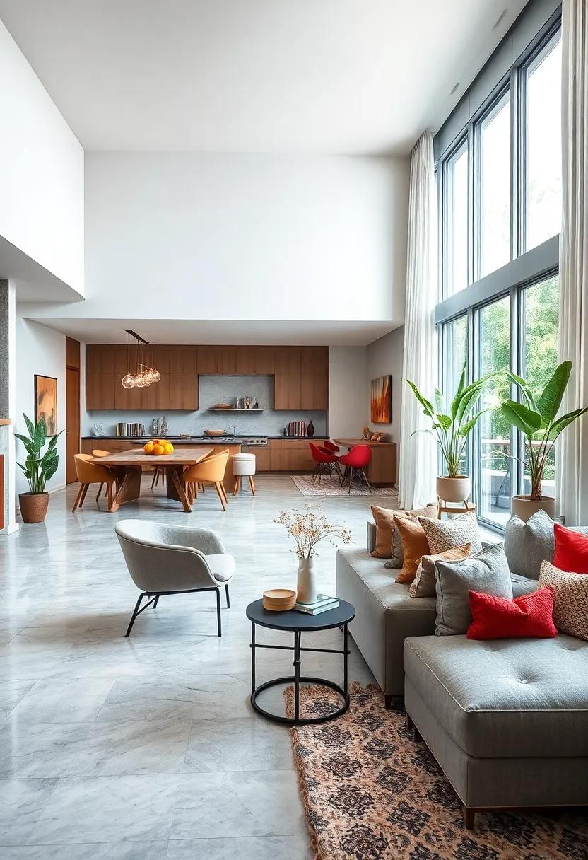 This approach not only enhances aesthetics but also fosters an environment where nature and comfort coexist, making your open-concept space truly multifunctional and appealing.