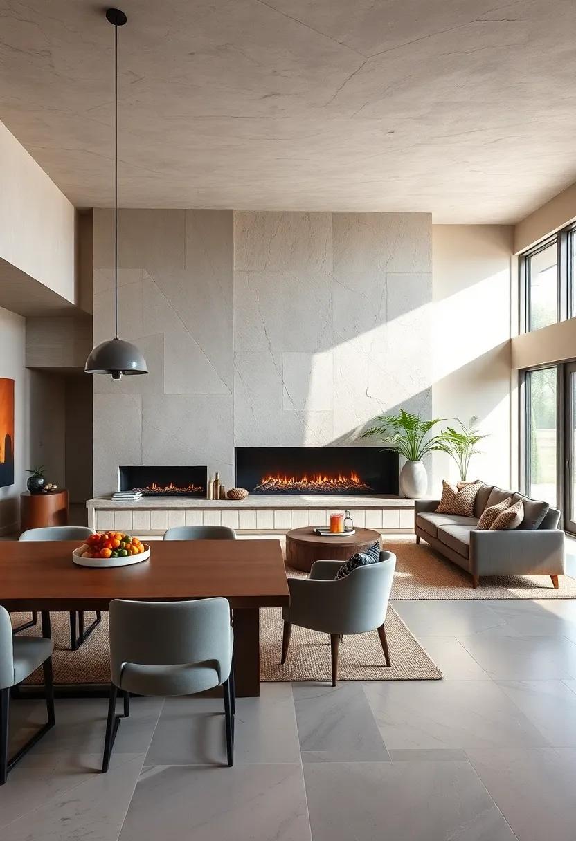Bringing a fireplace into your open-concept living and dining area transforms the atmosphere, marrying warmth with modern design. A sleek, contemporary fireplace can serve as a stunning visual anchor, drawing the eye and creating a focal point. Consider options like a minimalist wall-mounted model or an elegant linear fireplace, which can be integrated seamlessly into your décor, allowing for a more spacious feel. The soft glow of flames enhances the cozy ambiance, making it the perfect spot for intimate dinners or social gatherings.