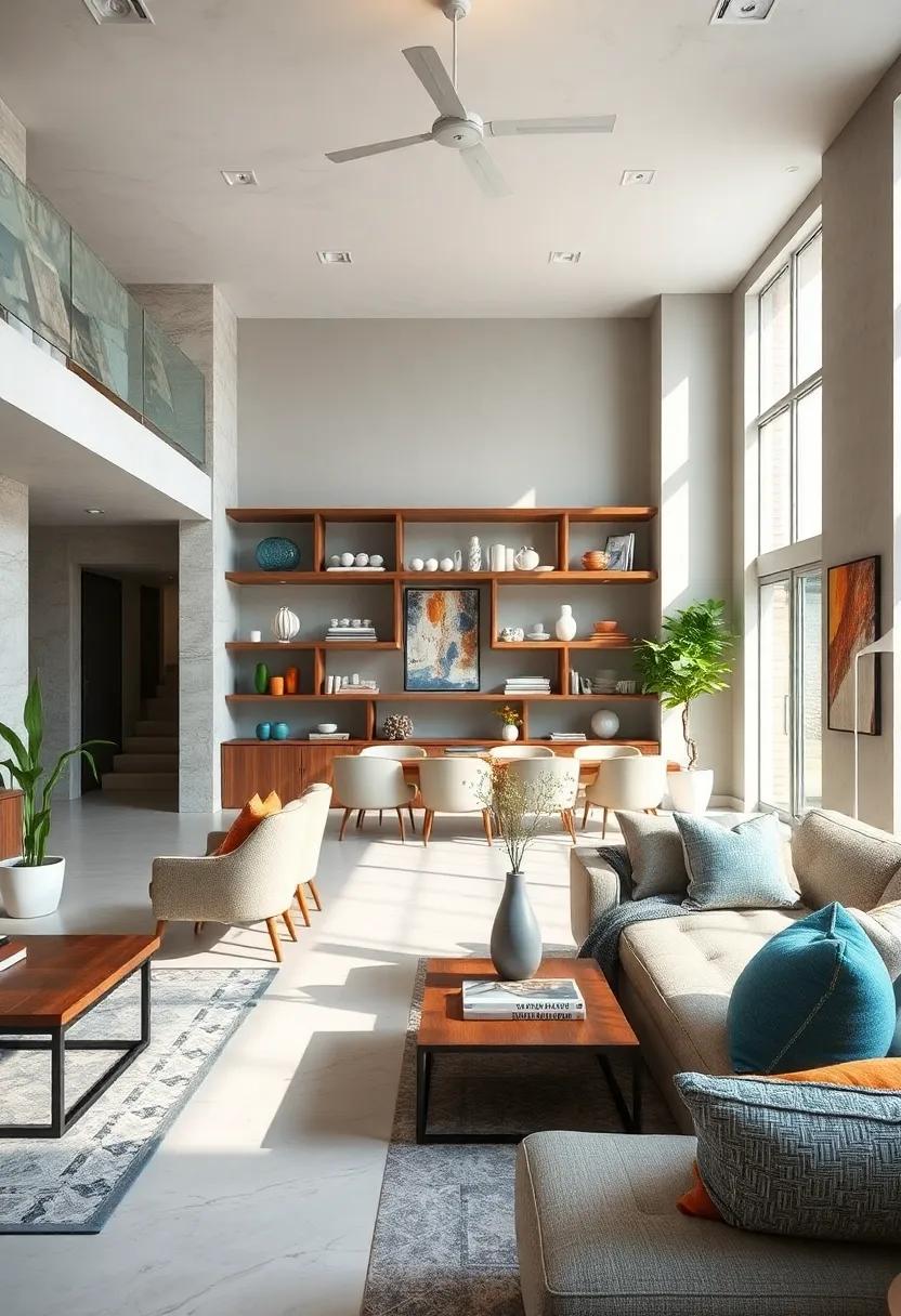 Vertical Space Utilization: Make the most of your walls with tall shelving or artwork that draws the eyes upwards, adding dimension to your open-concept layout