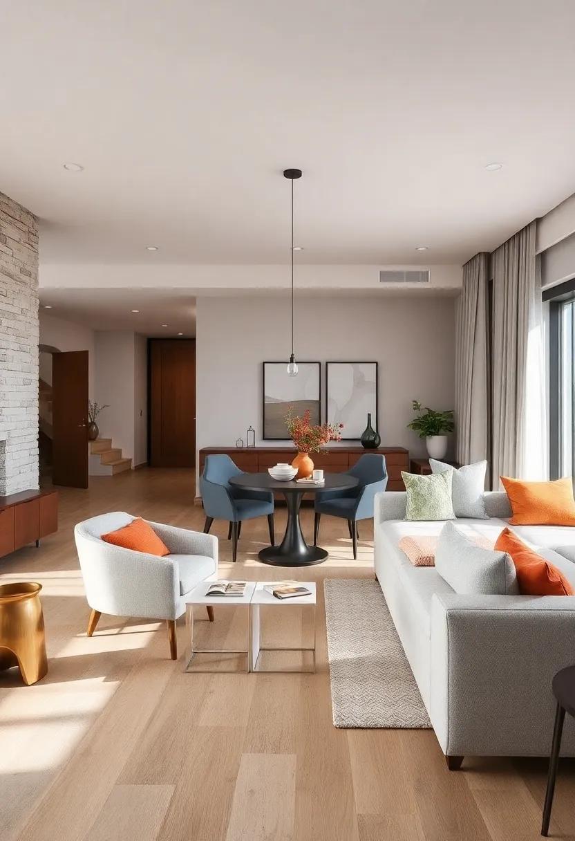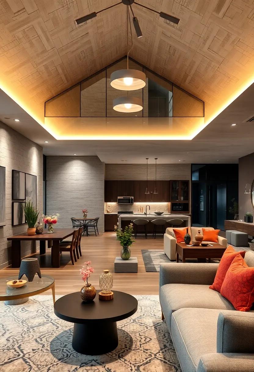 Don’t overlook the power of accent lighting to heighten the aesthetic appeal of your space. This type of lighting adds depth and character, drawing attention to artwork, architectural features, or decorative plants. Use wall sconces or table lamps as a way to highlight key design elements in your open layout. When selecting fixtures, consider materials and colors that either complement or contrast with your existing decor to create visual interest. By blending these three types of lighting, you can effortlessly enhance the mood and functionality of your open floor plan, ensuring it adapts beautifully to any occasion.