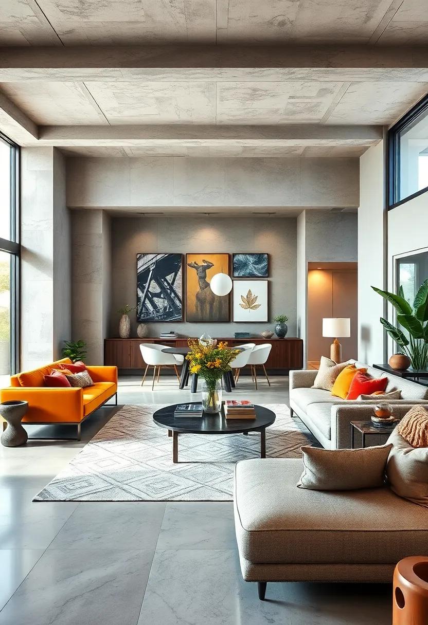 - Stained Concrete + Bright Paint: Concrete adds an industrial vibe, while vibrant hues can elevate the energy of the room.