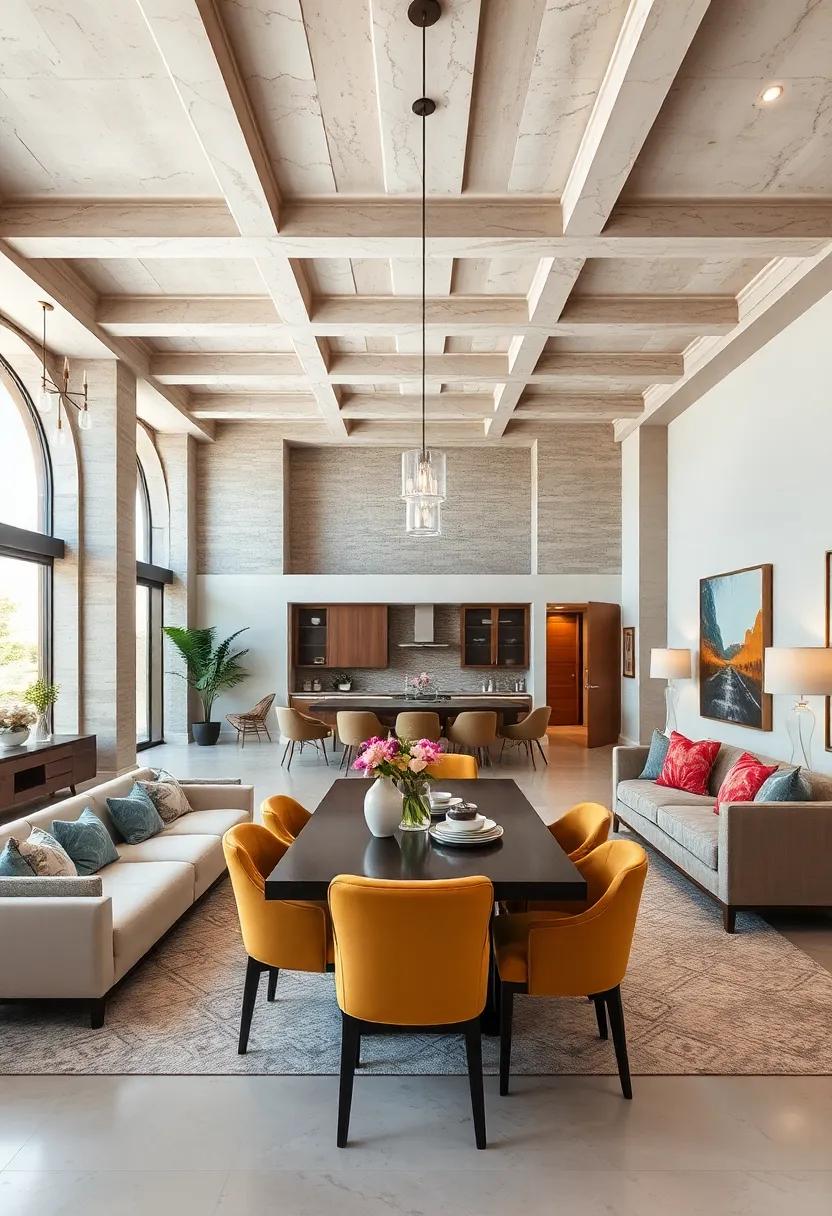 transform your open-concept living and dining areas with captivating ceiling designs that not only draw the eye upwards but also create a sense of depth and dimension.Consider incorporating exposed beams, which evoke a rustic charm while also adding a modern flair, especially in spaces adorned with minimalistic furniture. Another striking option is the coffered ceiling, featuring grid patterns that can effortlessly introduce a sophisticated touch. This architectural element not only enhances the aesthetics but also encourages visual interest, ensuring your ceiling becomes a focal point rather than an afterthought.