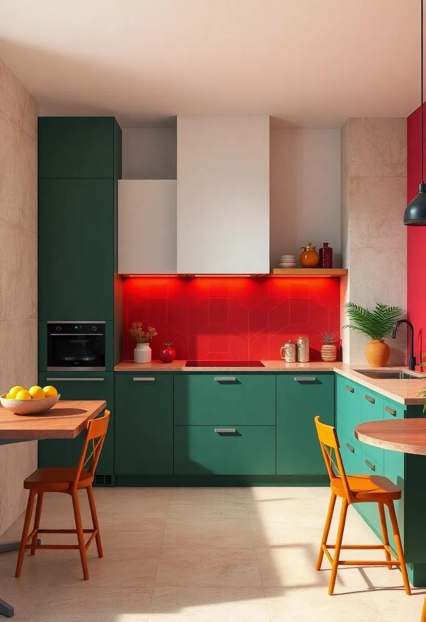 For an even bolder statement, consider accenting your kitchen with an unexpected color palette. Think of mixing vibrant colors and textures to create dynamic visual layers. You might add a dash of warmth with rich terracotta tiles or cool off the space with aqua-blue glass panels. Here are a few ideas to inspire your design: