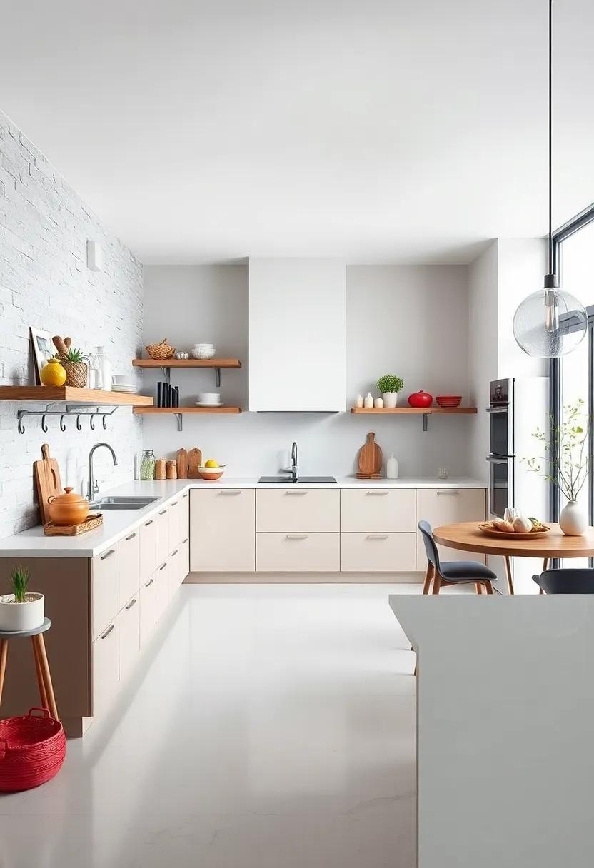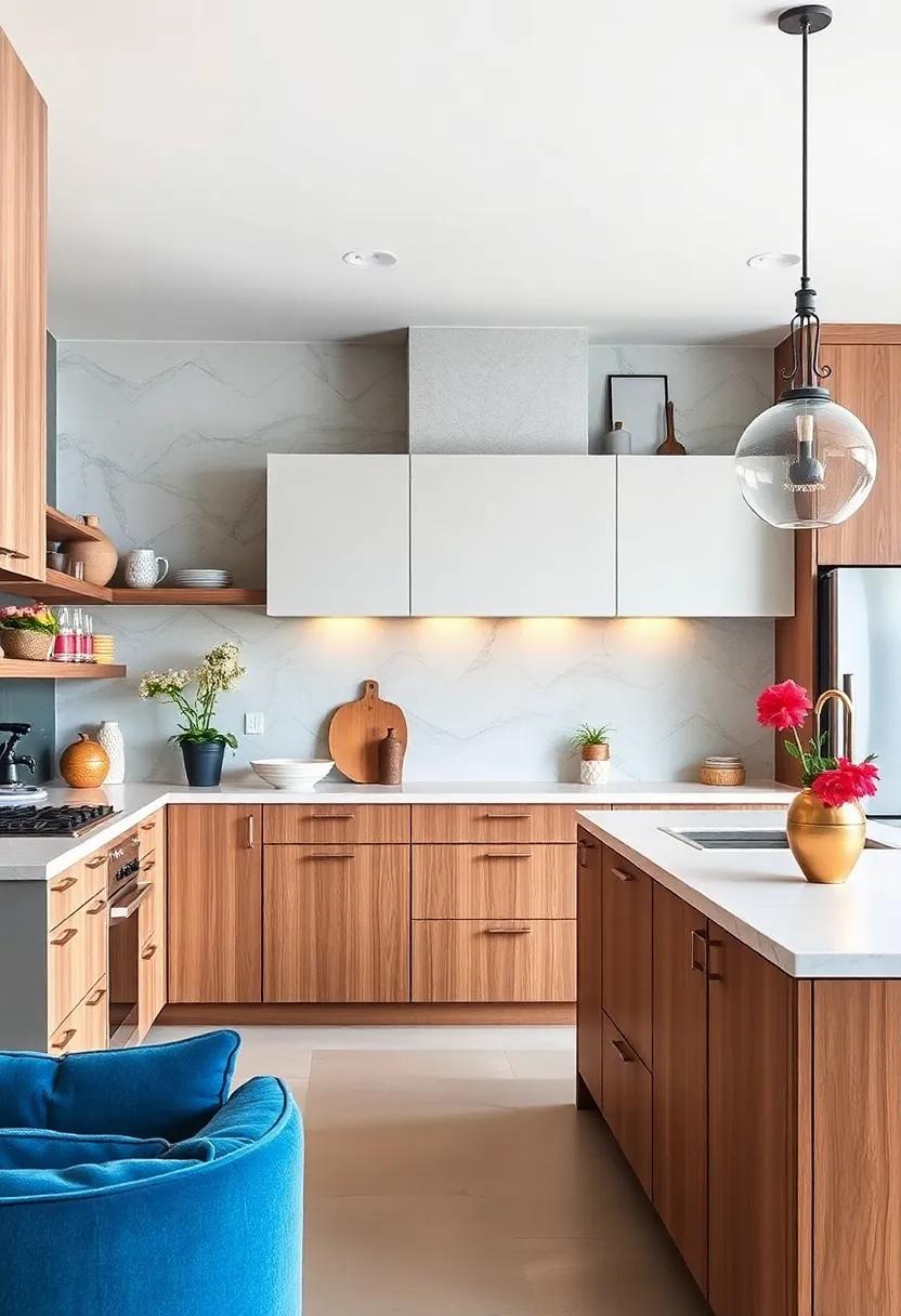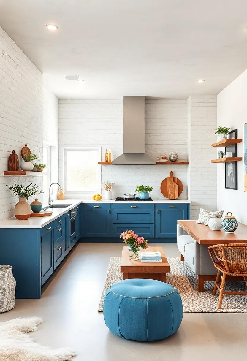 - Statement Décor: Hang colorful art or showcase a collection of bright ceramics on open shelving.
