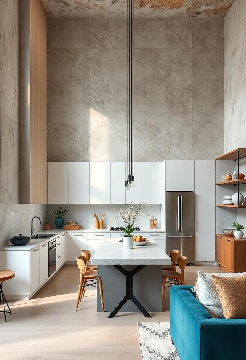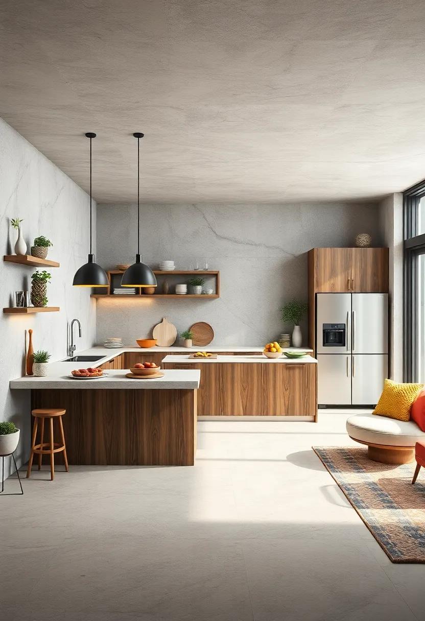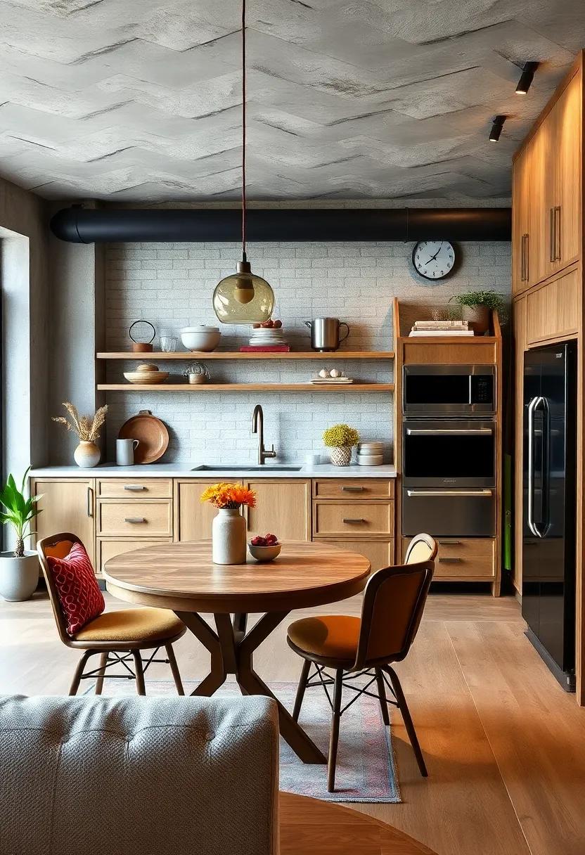 incorporate sleek stainless steel appliances and fixtures to enhance the contemporary feel of the space. These elements provide a stunning visual juxtaposition against the ruggedness of brick and concrete, creating a harmonious balance between elegance and toughness. Consider open shelving crafted from reclaimed wood to showcase your favorite cooking utensils and fresh ingredients, while strategic lighting—like Edison bulbs or pendant lights—can accentuate the raw materials and create a warm, inviting ambiance. This blend of textures and finishes not only defines the industrial chic style but also transforms your kitchen into a stylish haven tailored for creativity and comfort.